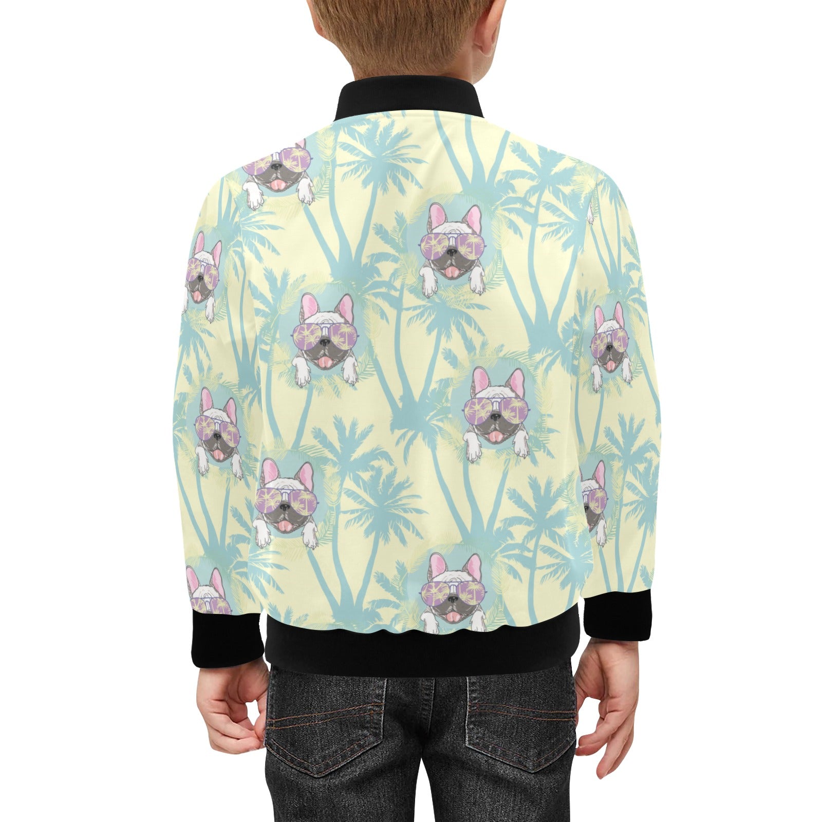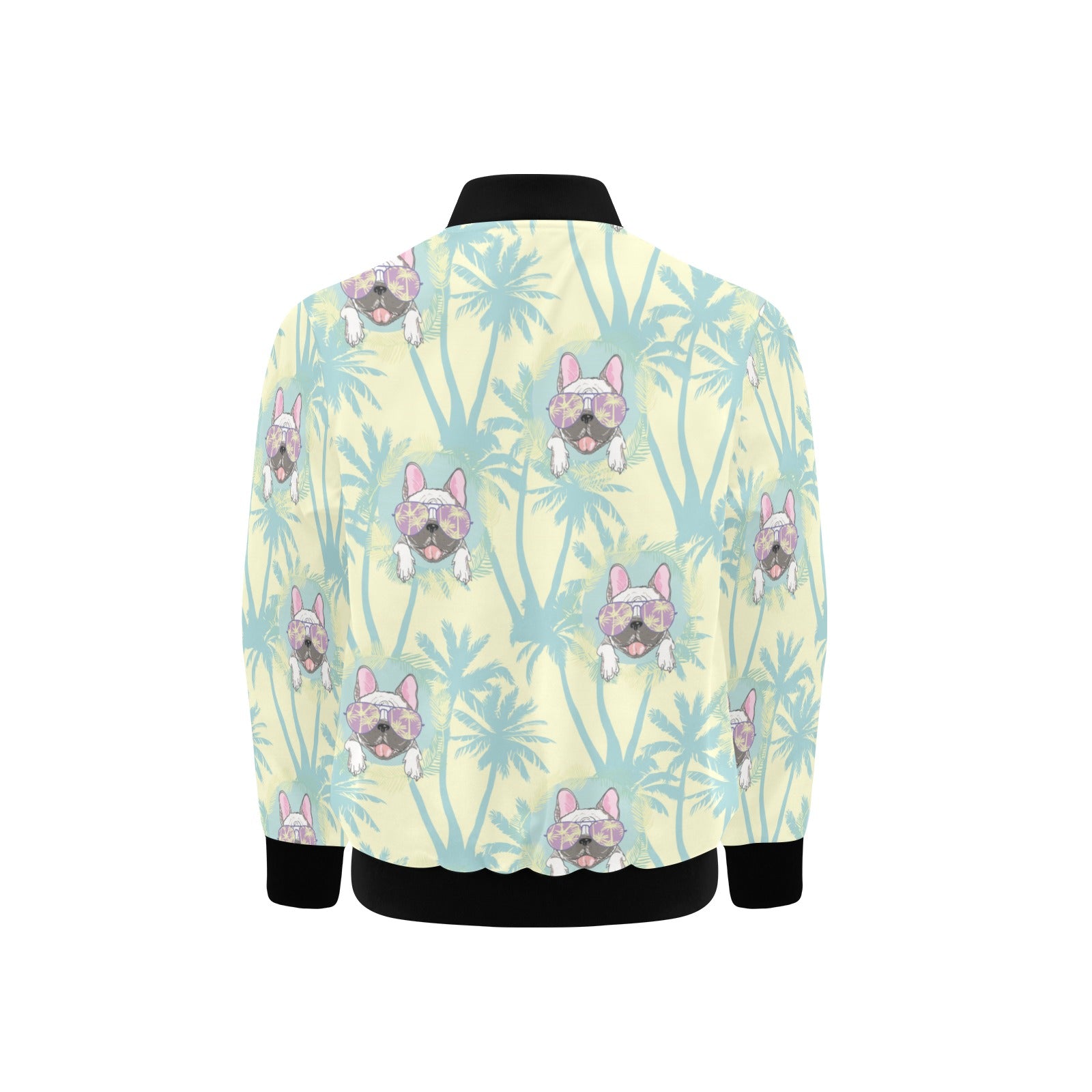 French bulldog hawaii blackground Kids' Boys' Girls' Bomber Jacket