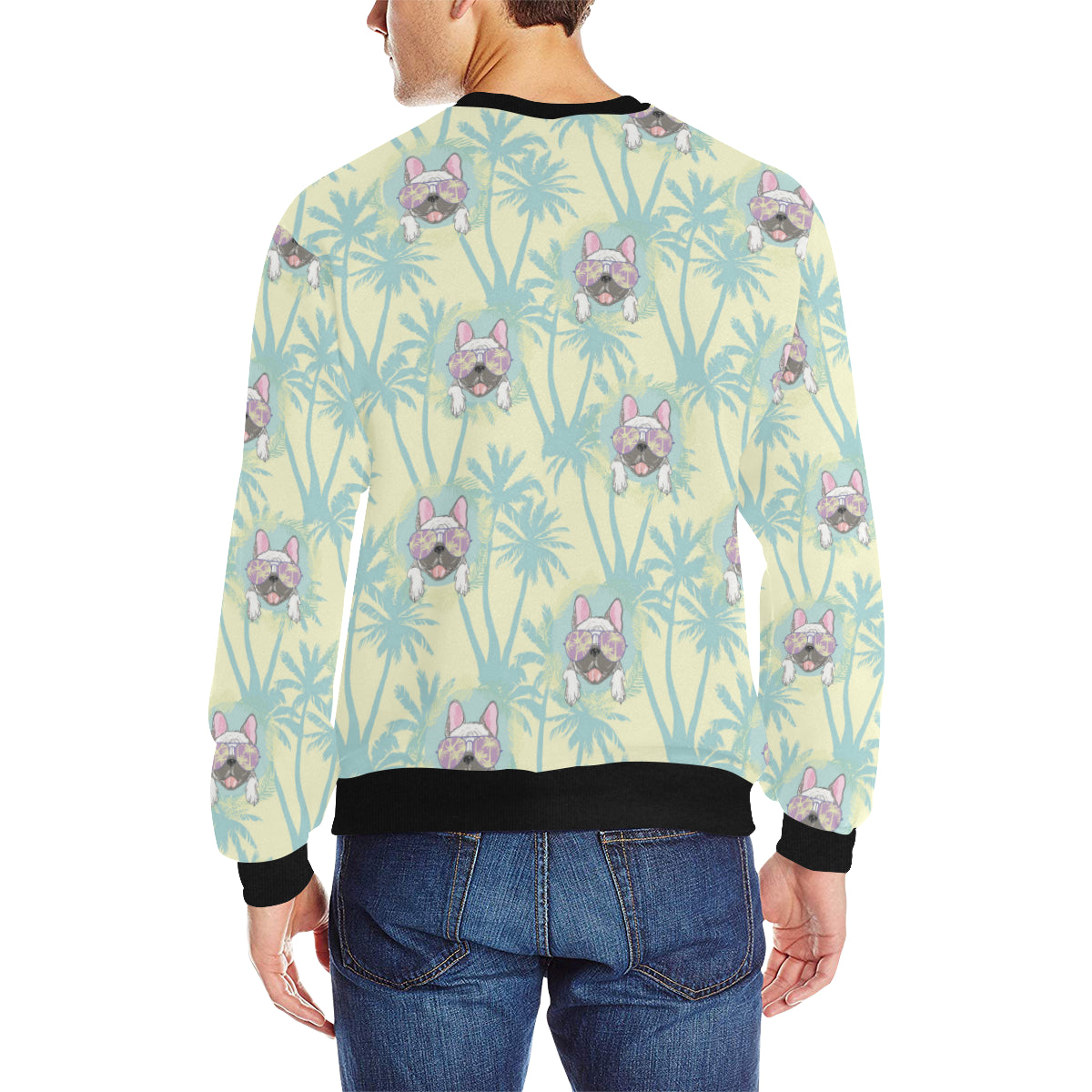 French bulldog hawaii blackground Men's Crew Neck Sweatshirt
