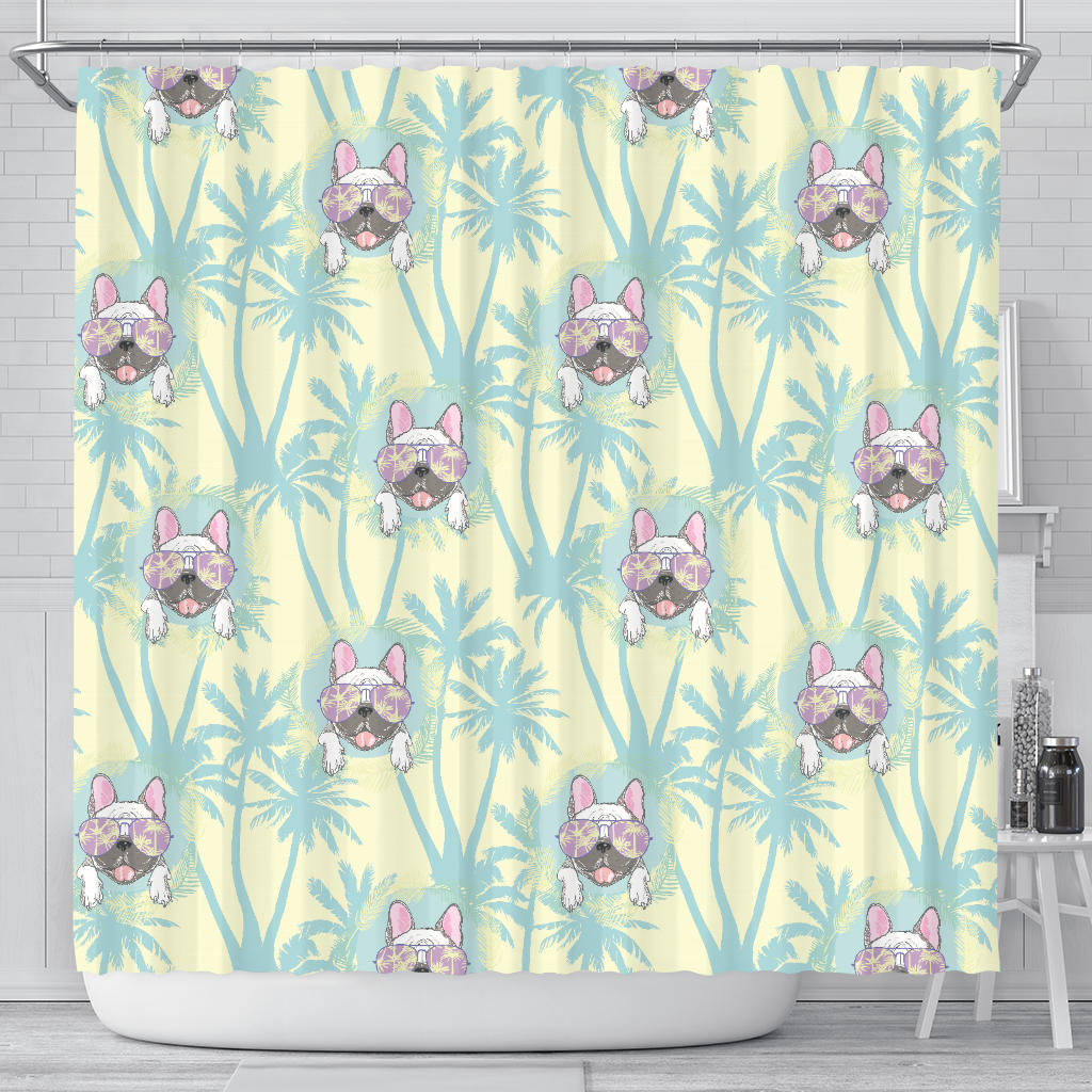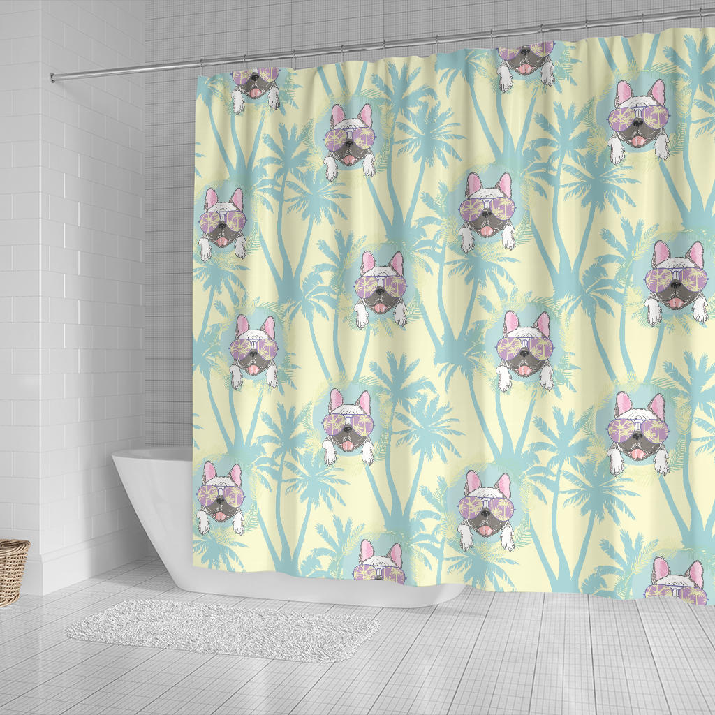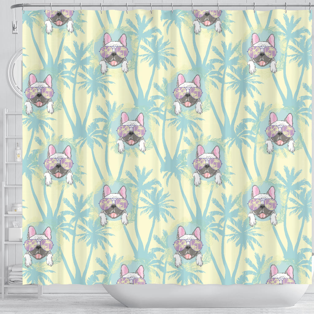 French Bulldog Hawaii Blackground Shower Curtain Fulfilled In US