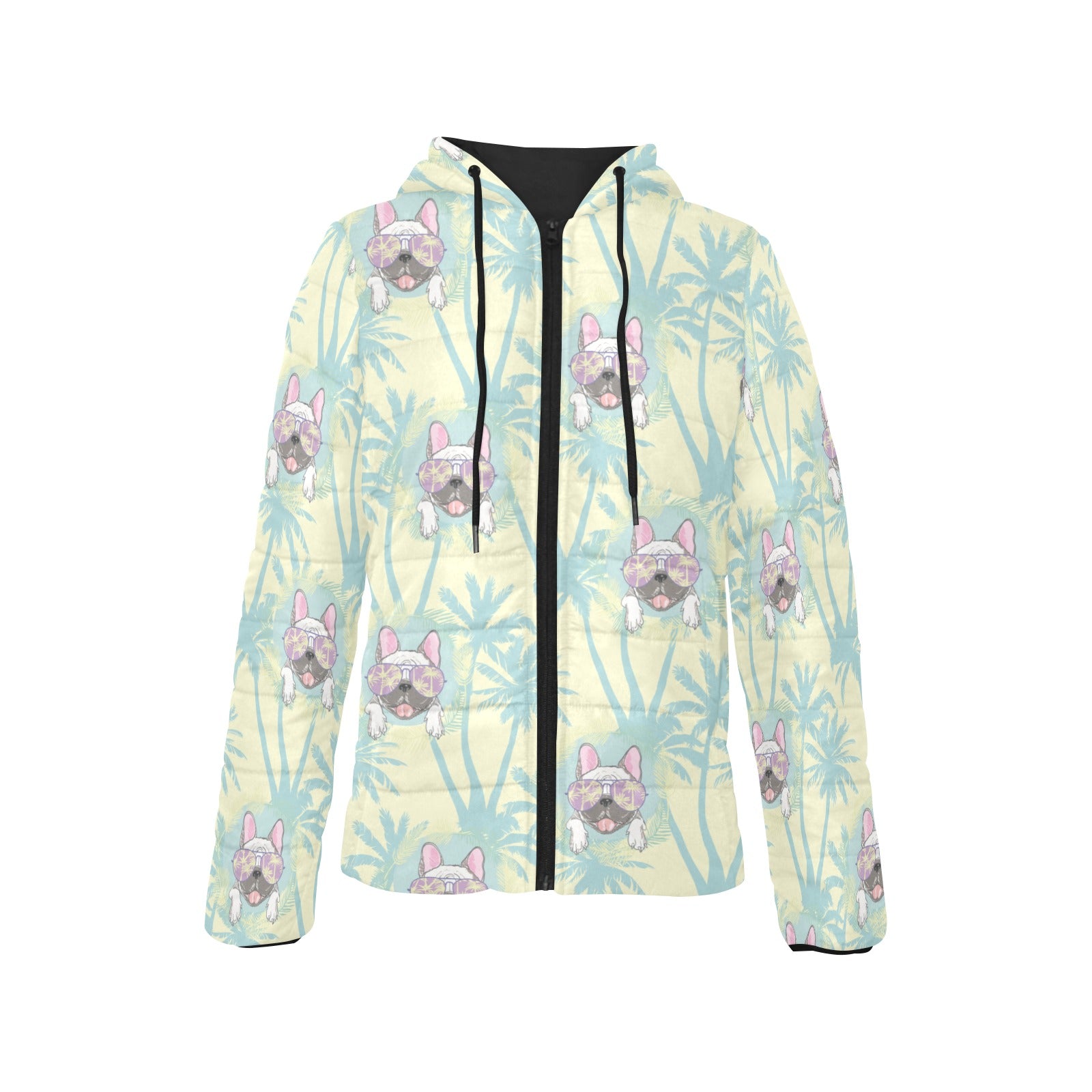 French bulldog hawaii blackground Women's Padded Hooded Jacket