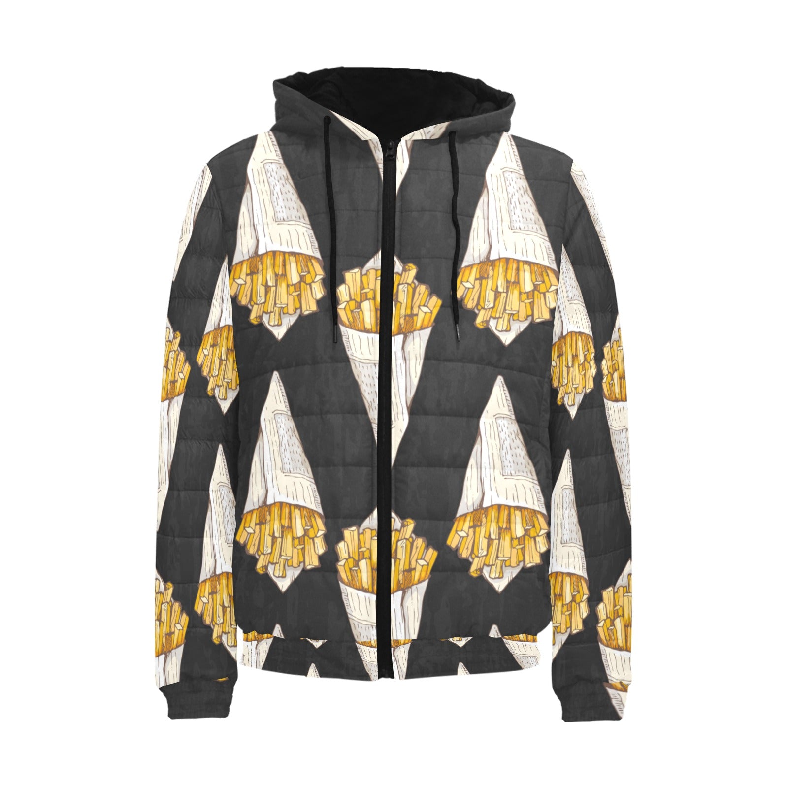 French fries dark background Men's Padded Hooded Jacket