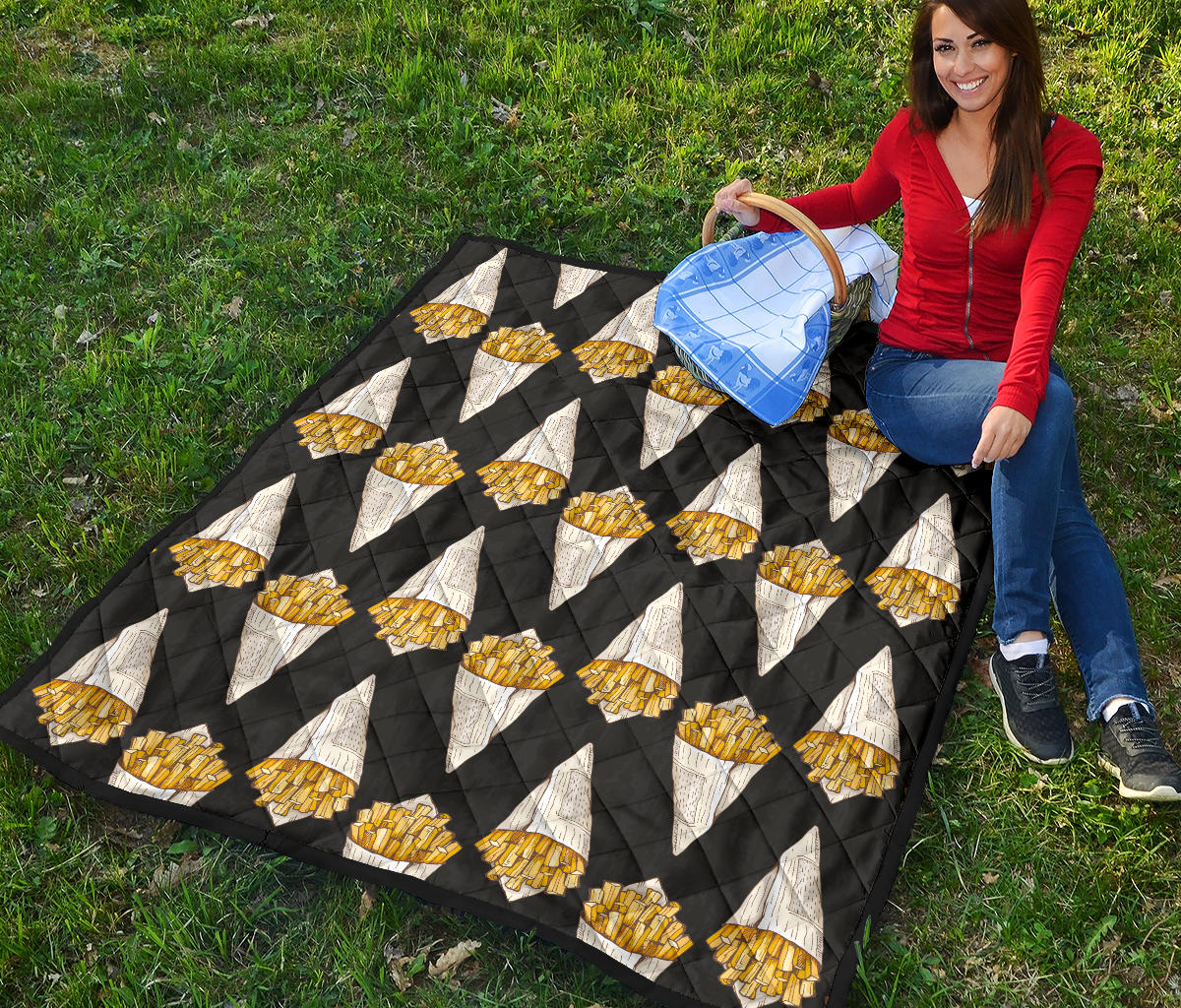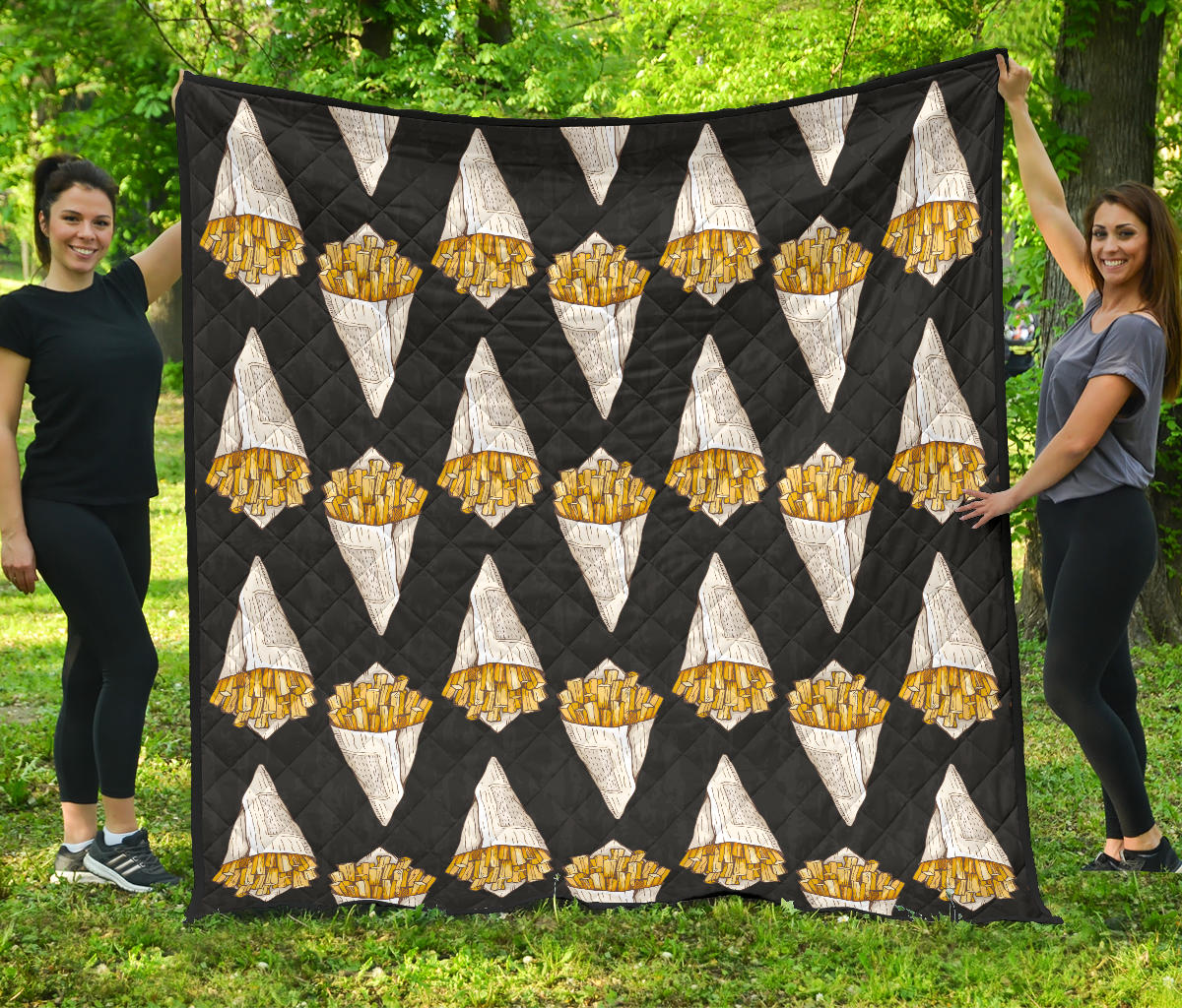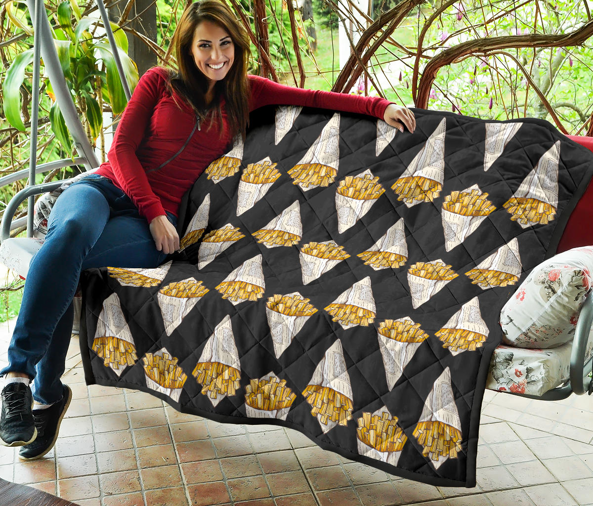 French Fries Dark Background Premium Quilt is a uniqued design and limited item. It made to order, hand printed, and sewn with love in our factory.