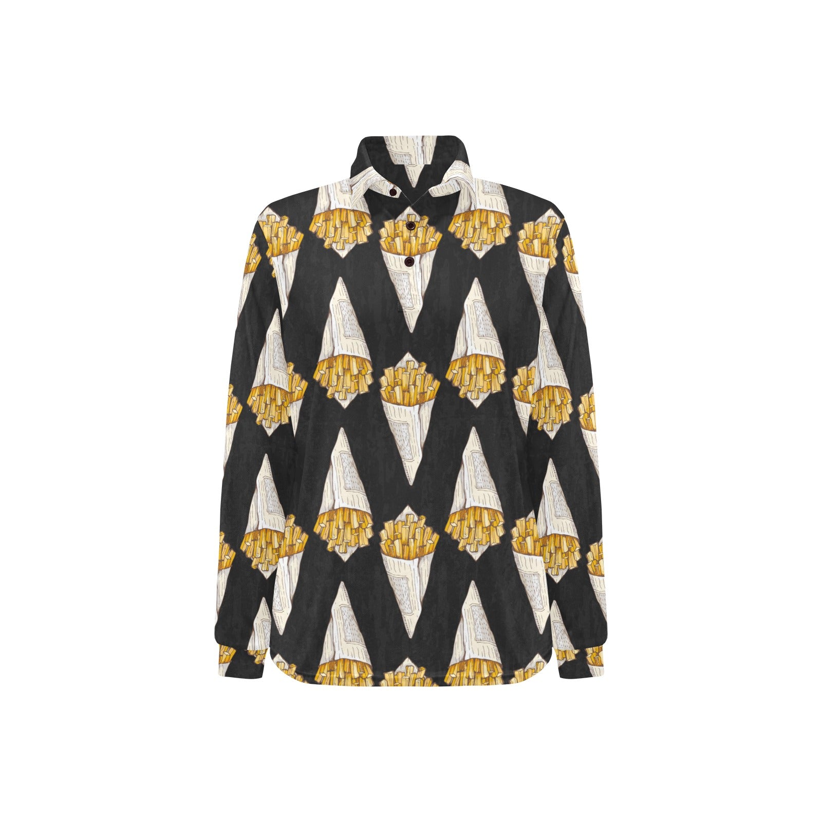 French fries dark background Women's Long Sleeve Polo Shirt