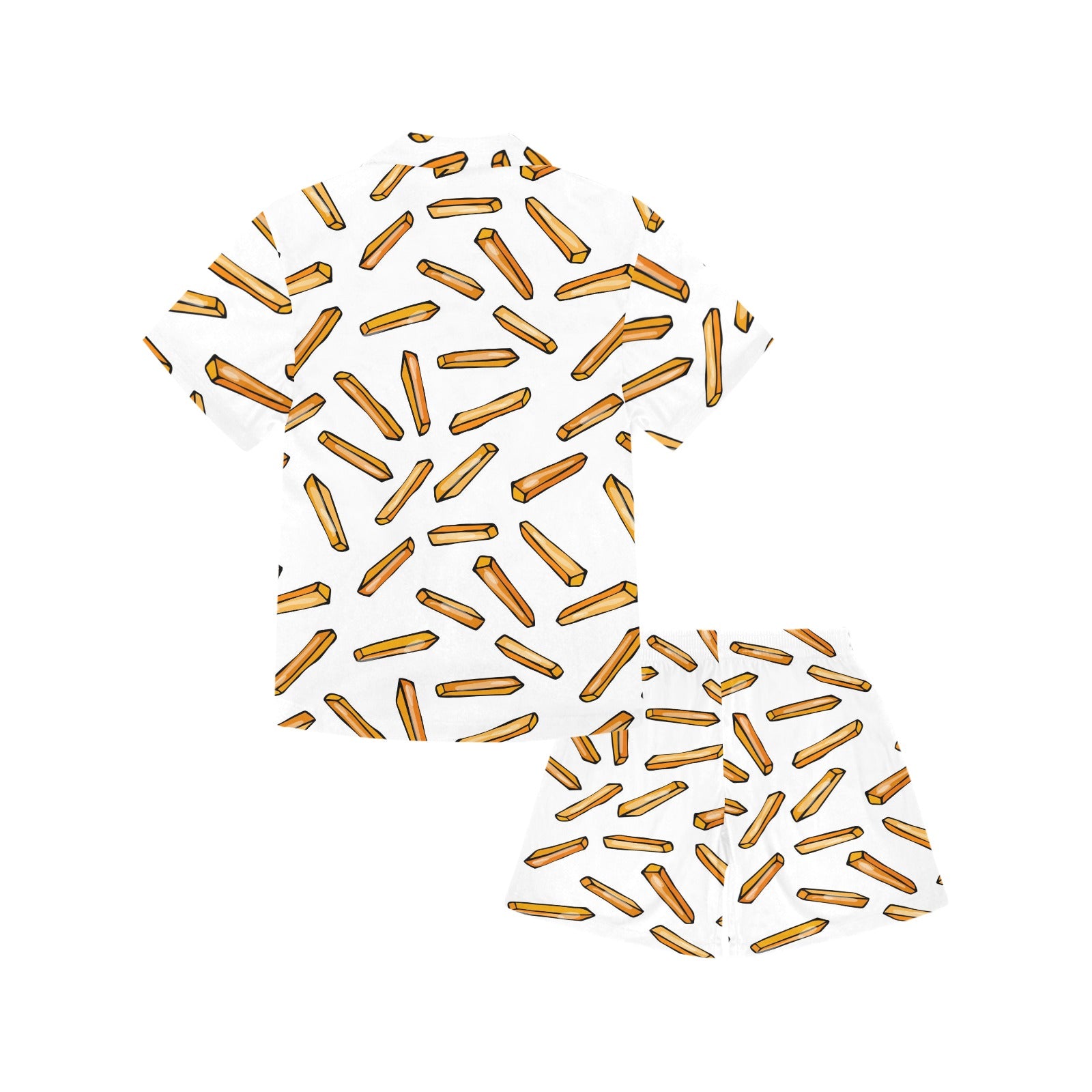 French fries potato pattern Kids' Boys' Girls' V-Neck Short Pajama Set