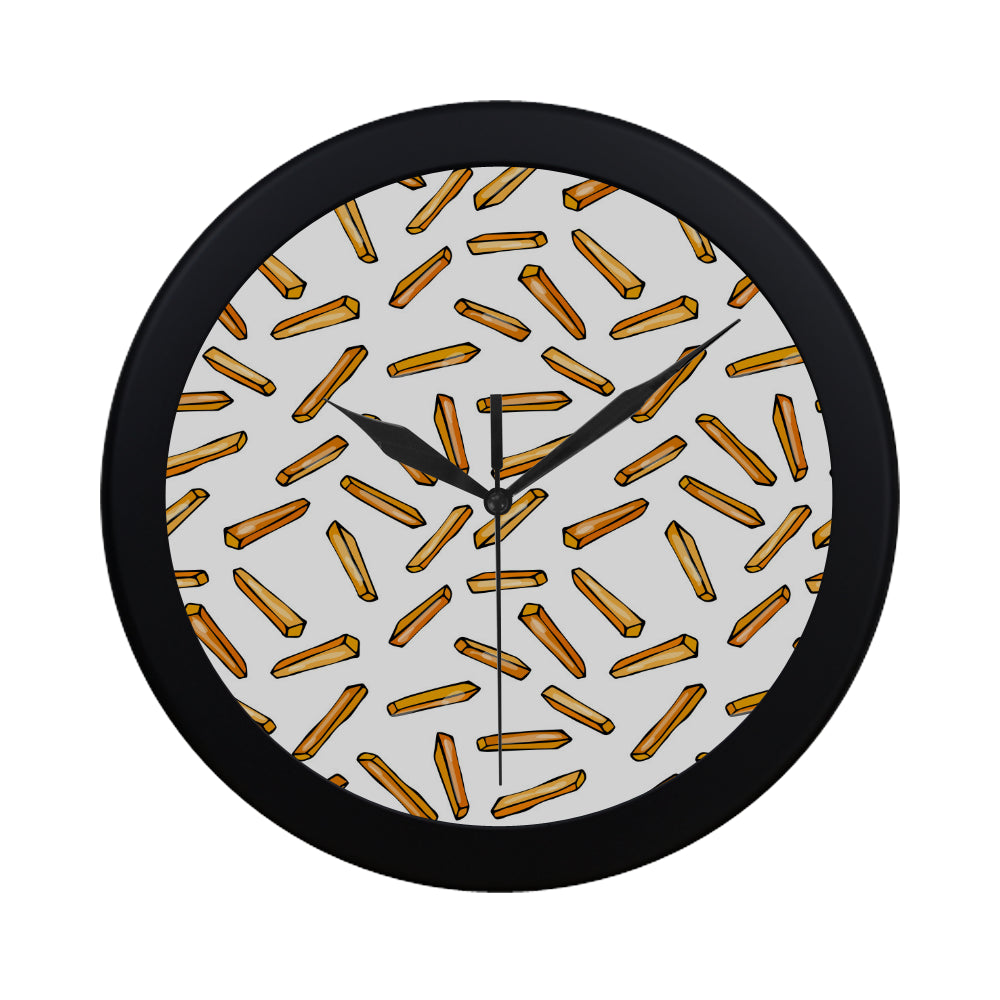 French fries potato pattern Elegant Black Wall Clock is a uniqued design and limited item. It made to order, hand printed, and sewn with love in our factory.