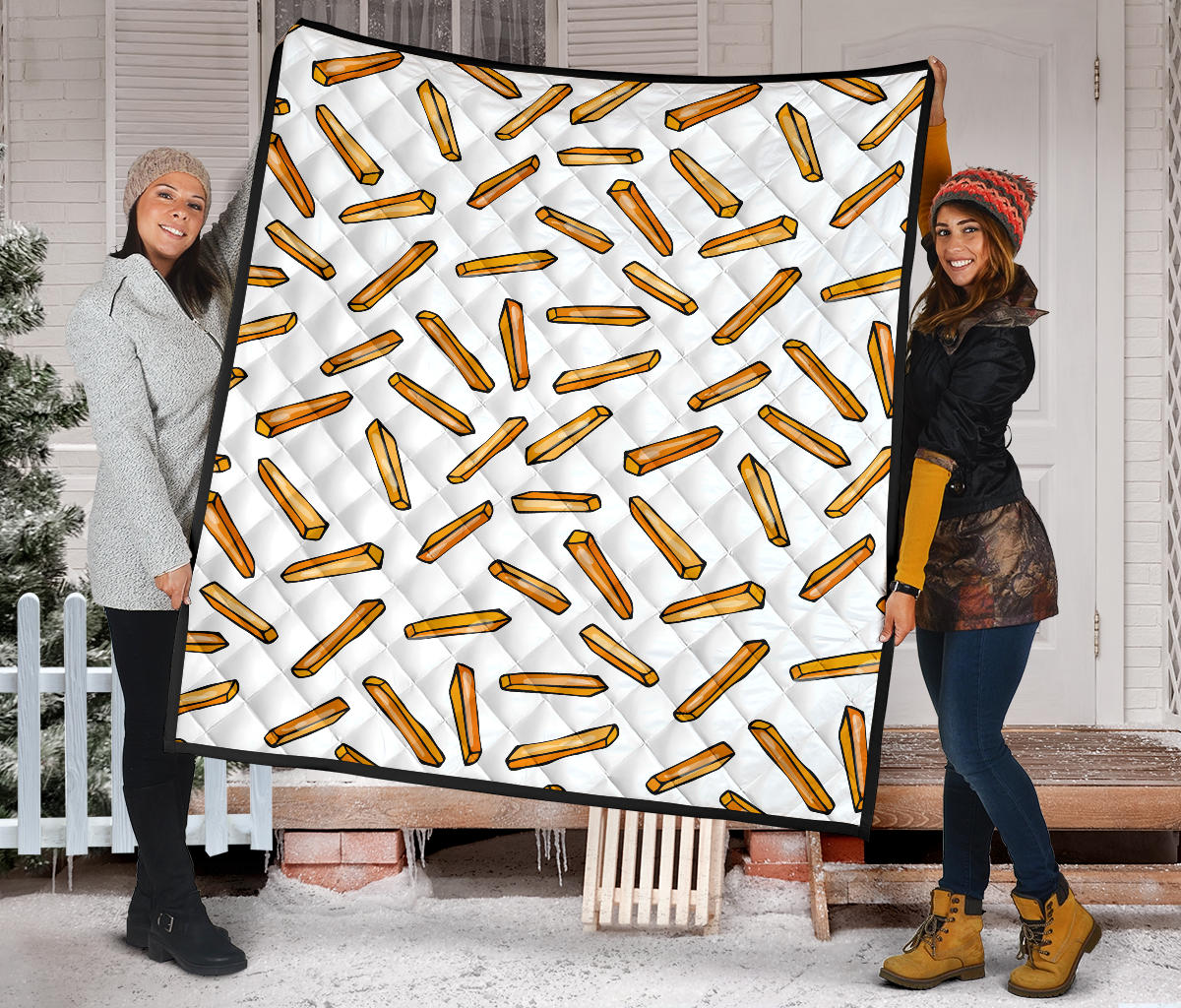 French Fries Potato Pattern Premium Quilt is a uniqued design and limited item. It made to order, hand printed, and sewn with love in our factory.
