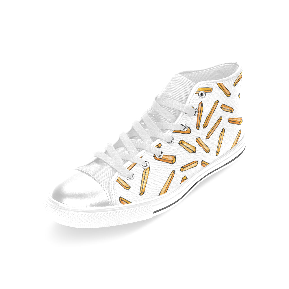 French fries potato pattern Women's High Top Canvas Shoes White