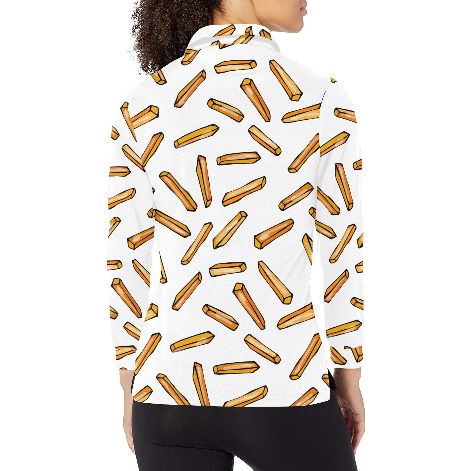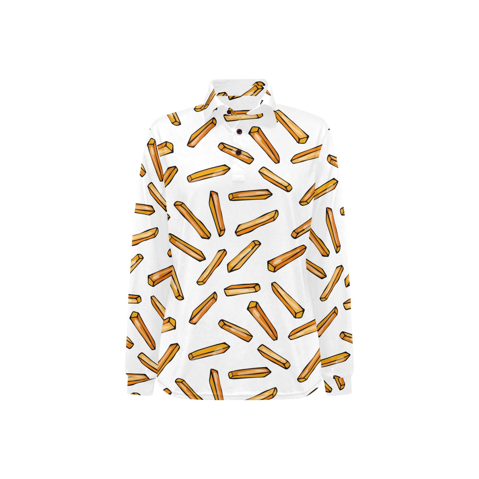 French fries potato pattern Women's Long Sleeve Polo Shirt