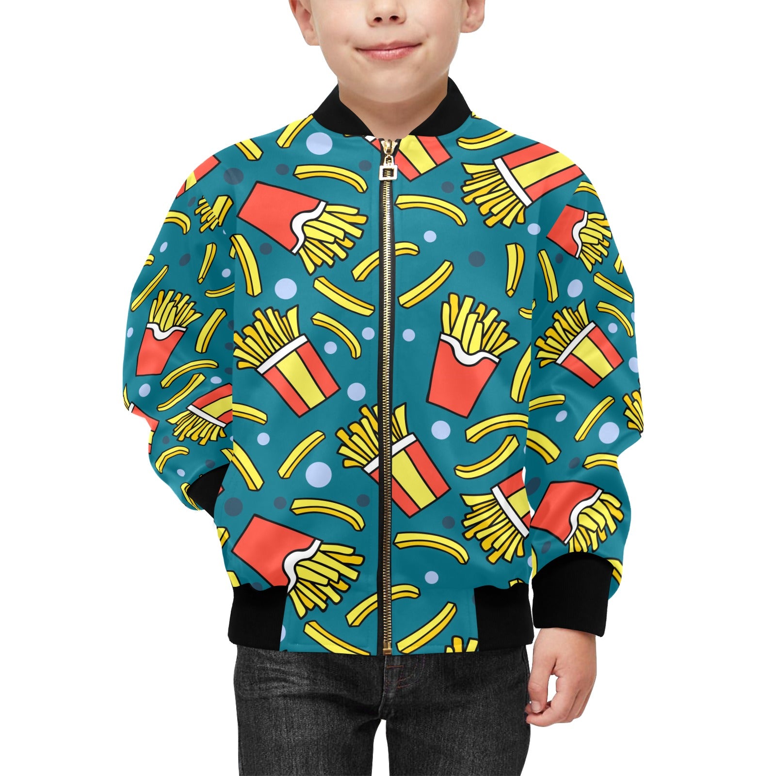 French fries red paper box pattern Kids' Boys' Girls' Bomber Jacket
