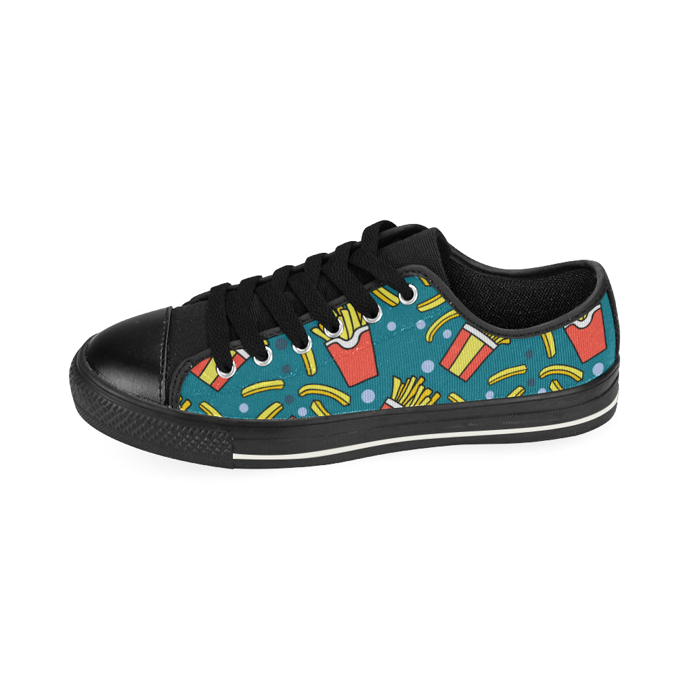 French fries red paper box pattern Men's Low Top Canvas Shoes Black