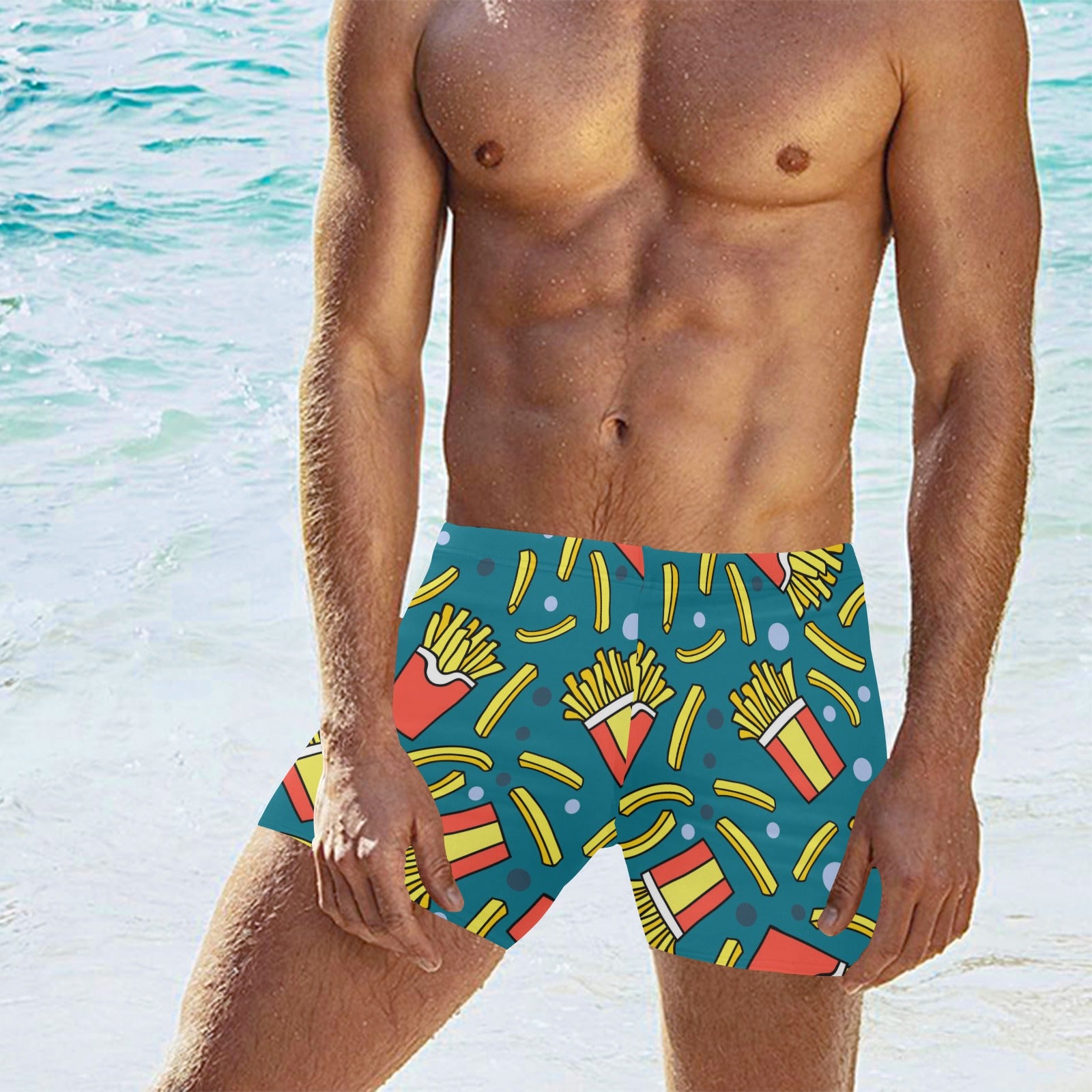 French fries red paper box pattern Men's Swimming Trunks