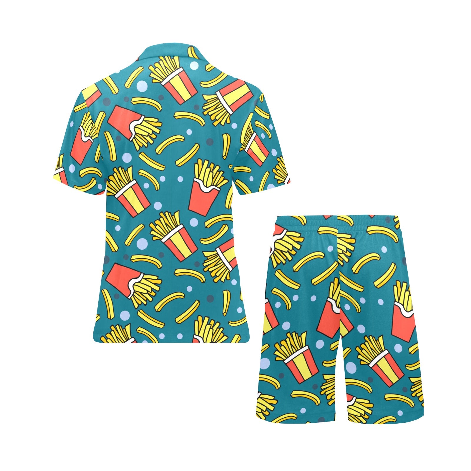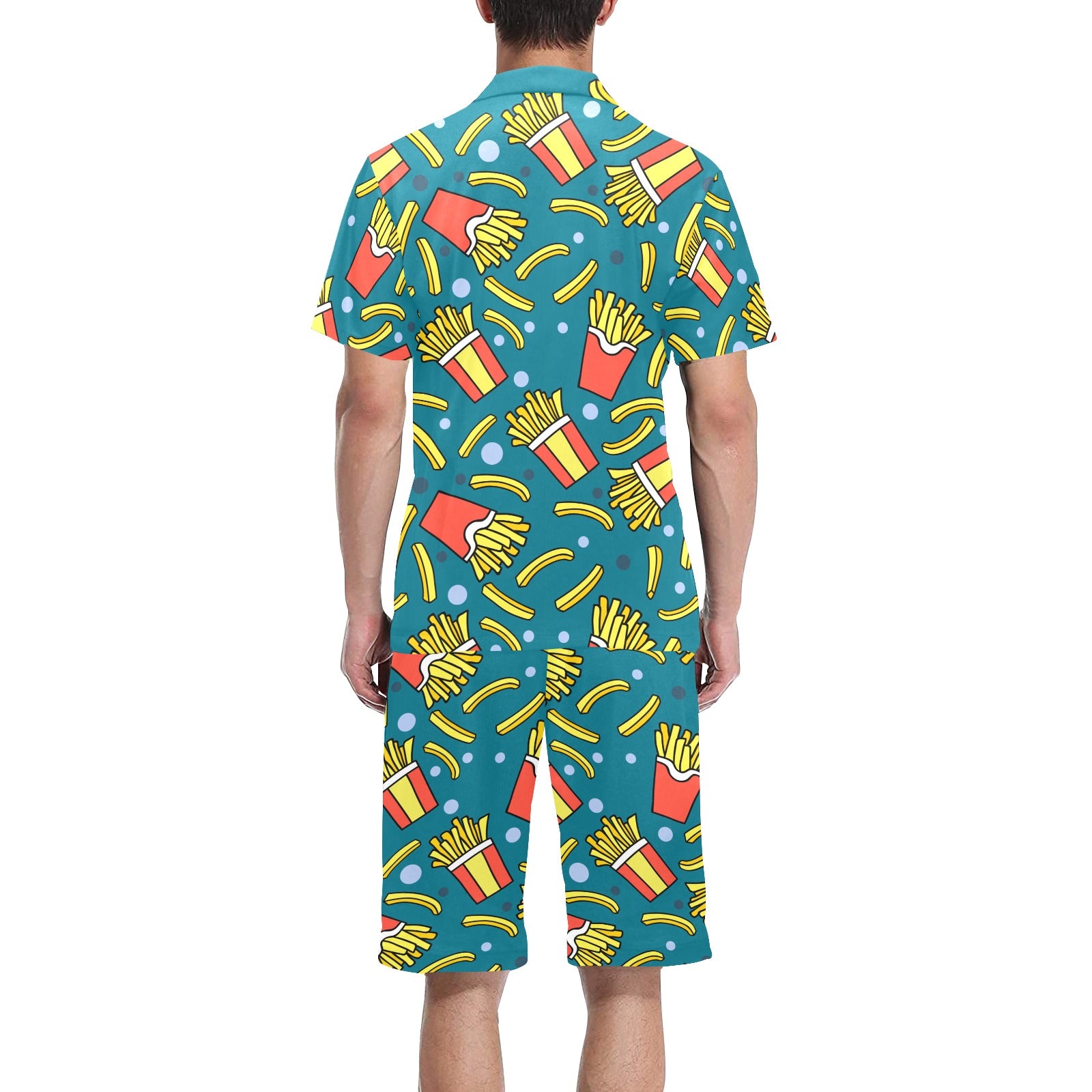 French fries red paper box pattern Men's V-Neck Short Pajama Set