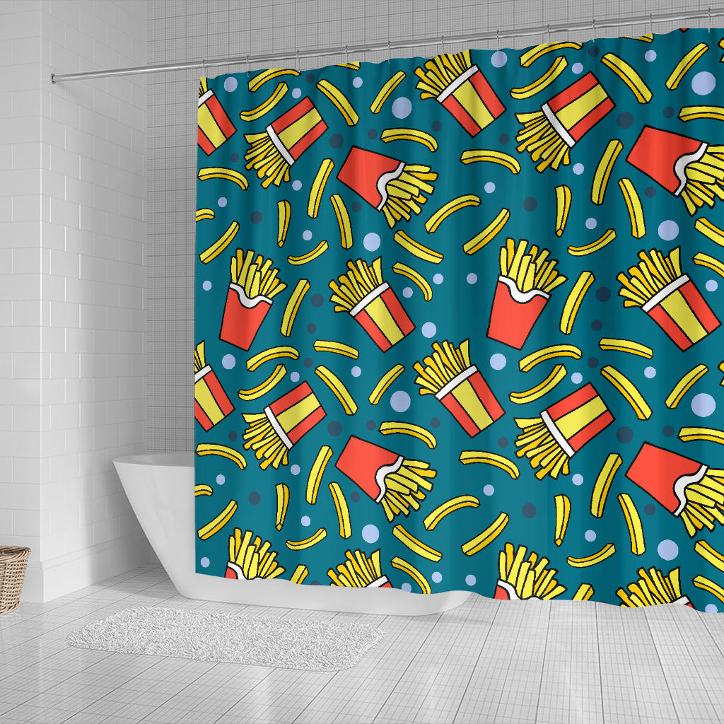 French Fries Red Paper Box Pattern Shower Curtain Fulfilled In US