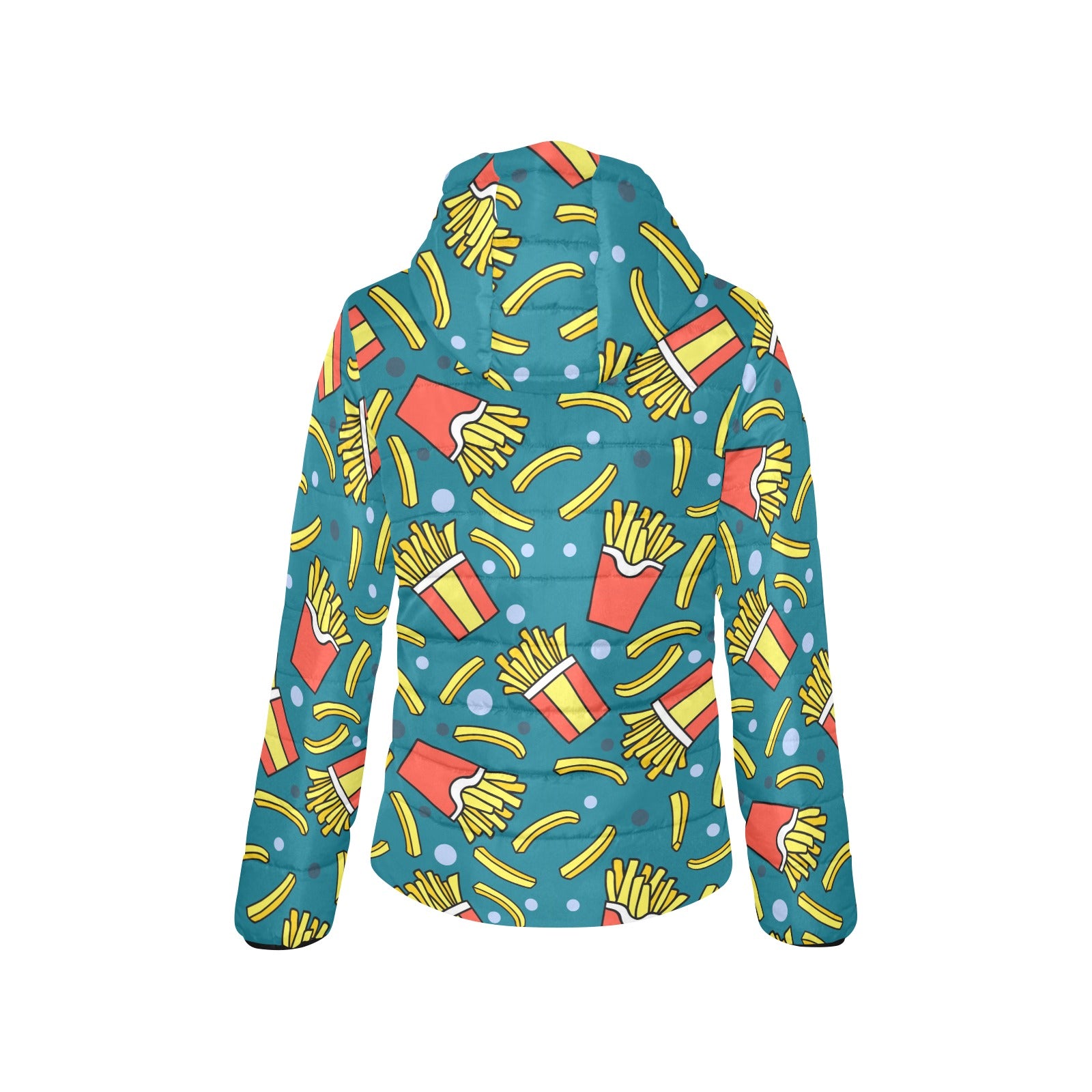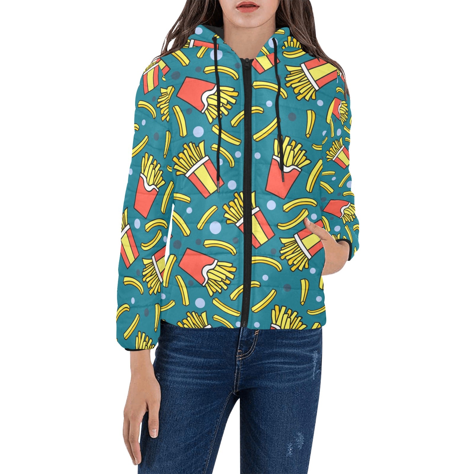 French fries red paper box pattern Women's Padded Hooded Jacket