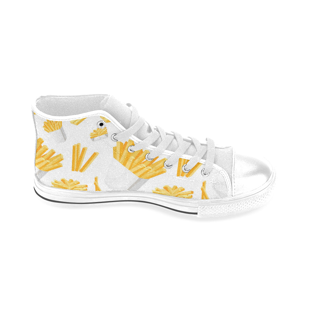 French fries white paper box pattern Men's High Top Canvas Shoes White