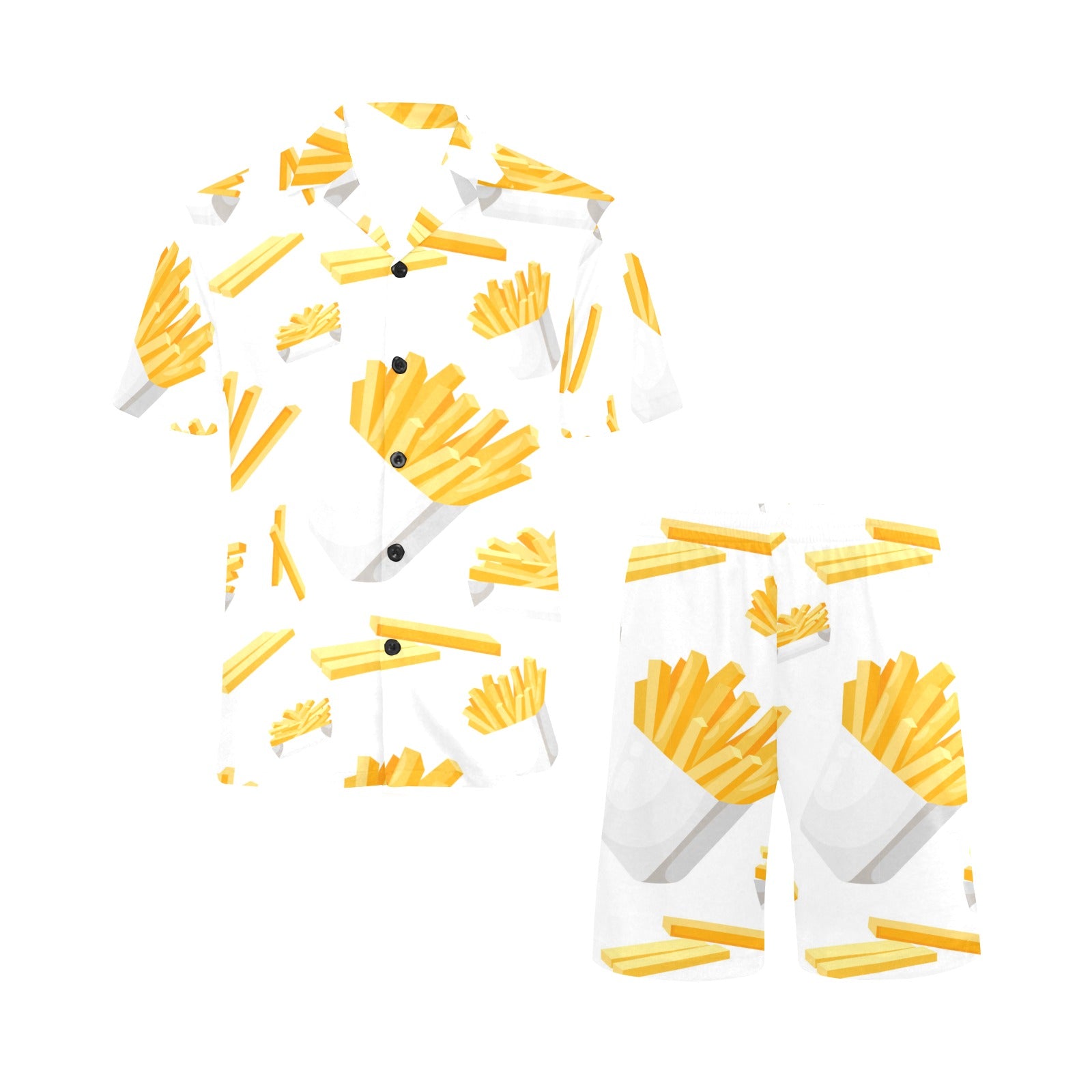 French fries white paper box pattern Men's V-Neck Short Pajama Set