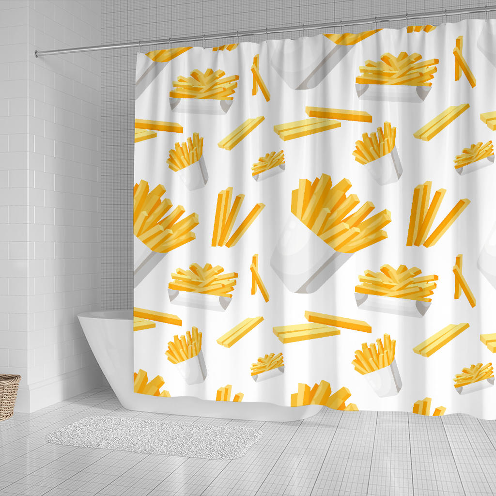 French Fries White Paper Box Pattern Shower Curtain Fulfilled In US