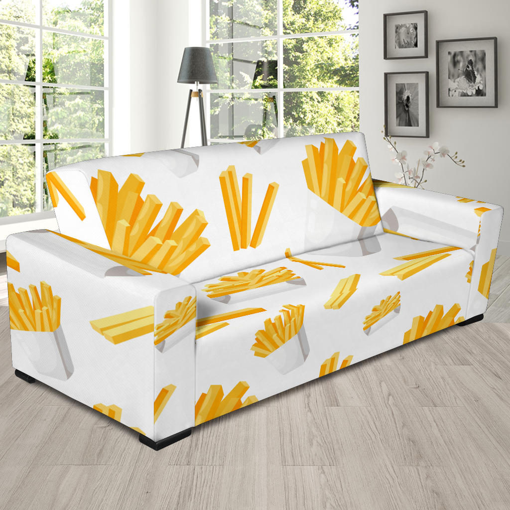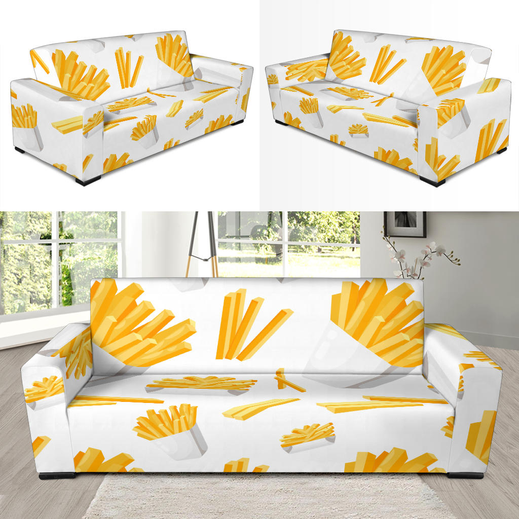 French fries white paper box pattern Sofa Slipcover is a uniqued design and limited item. It made to order, hand printed, and sewn with love in our factory.