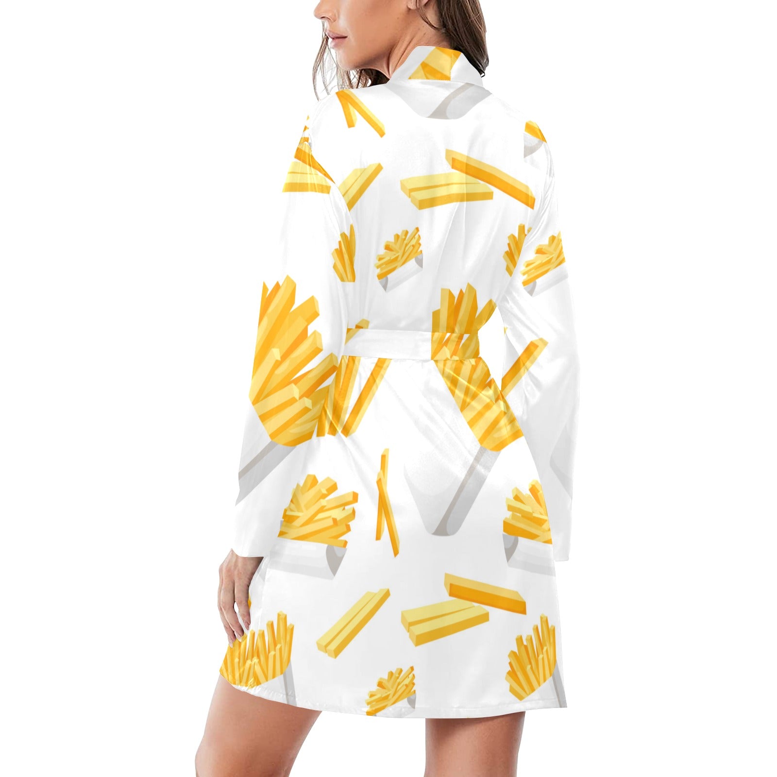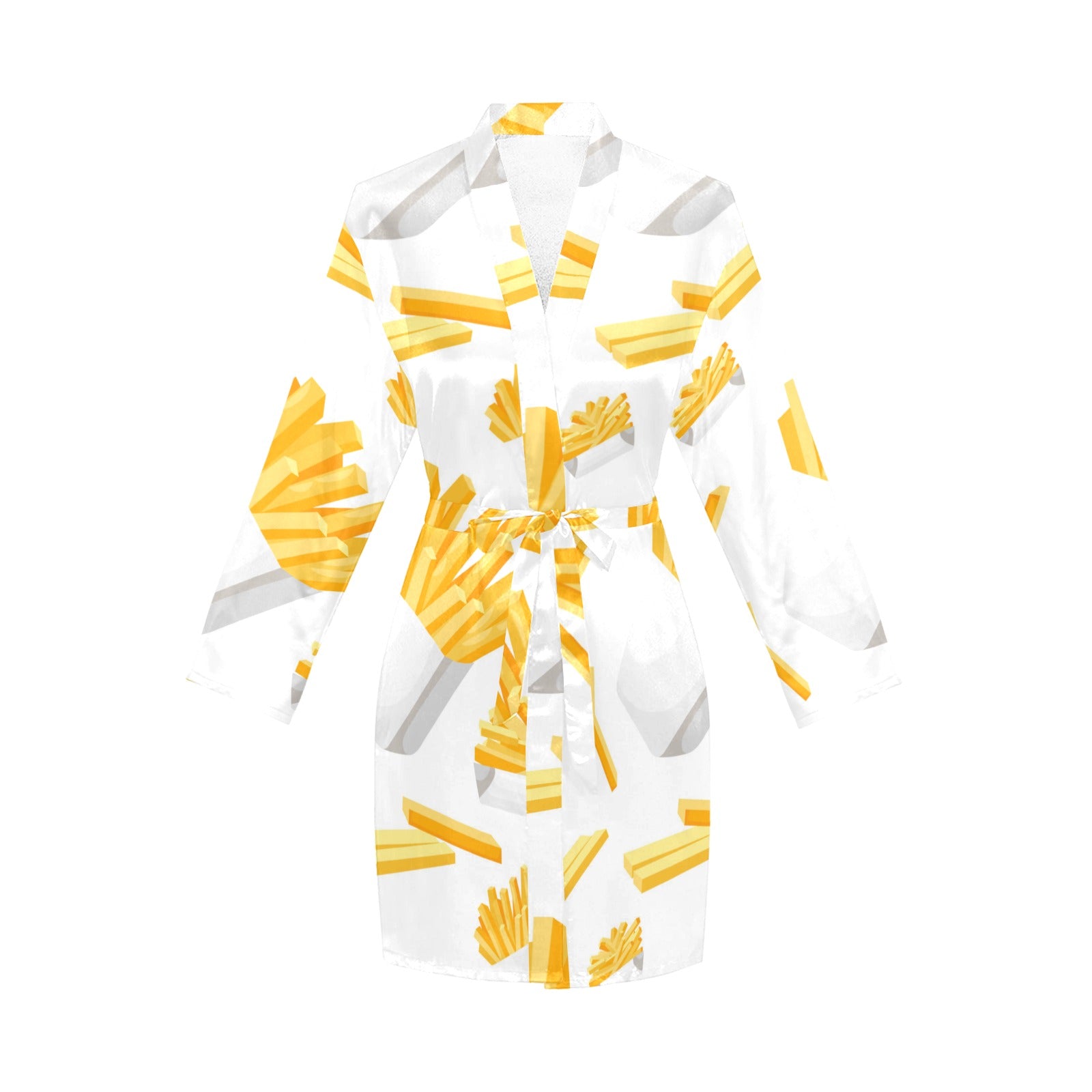 French fries white paper box pattern Women's Long Sleeve Belted Night Robe