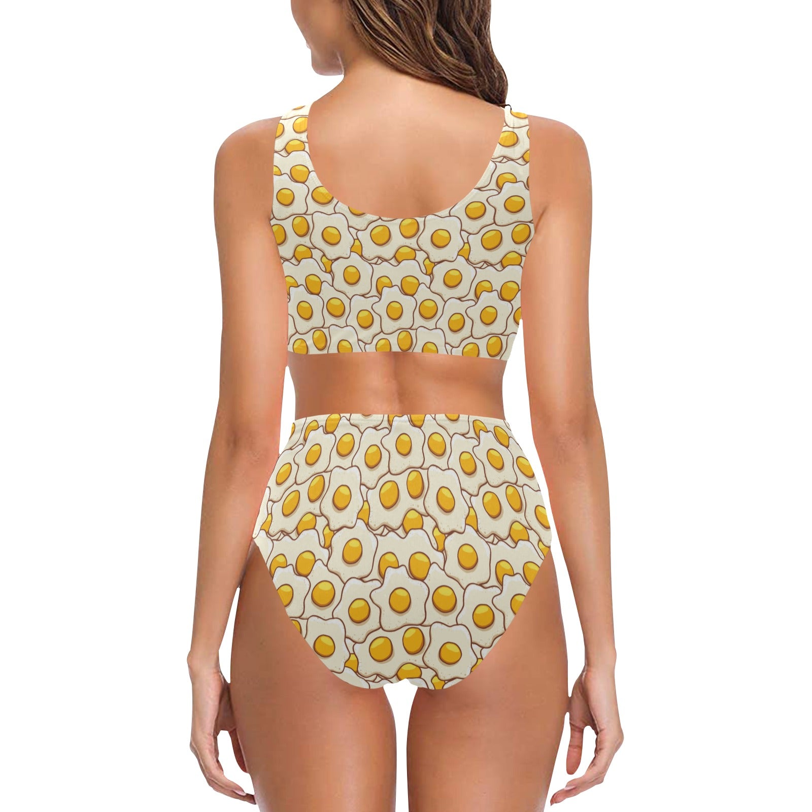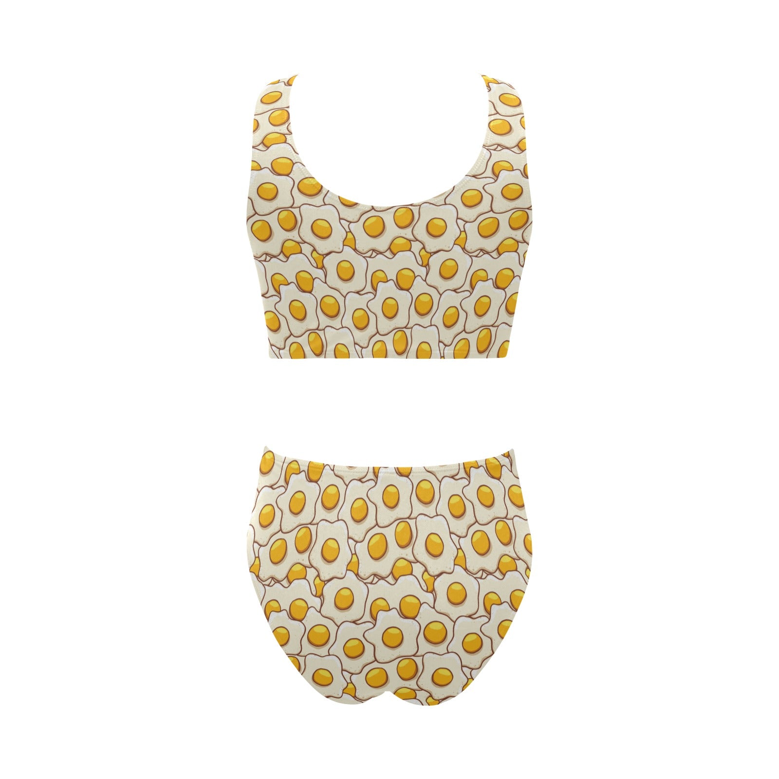 Fried Eggs Pattern Print Design 02 Chest Bowknot High Waisted Bikini Swimsuit