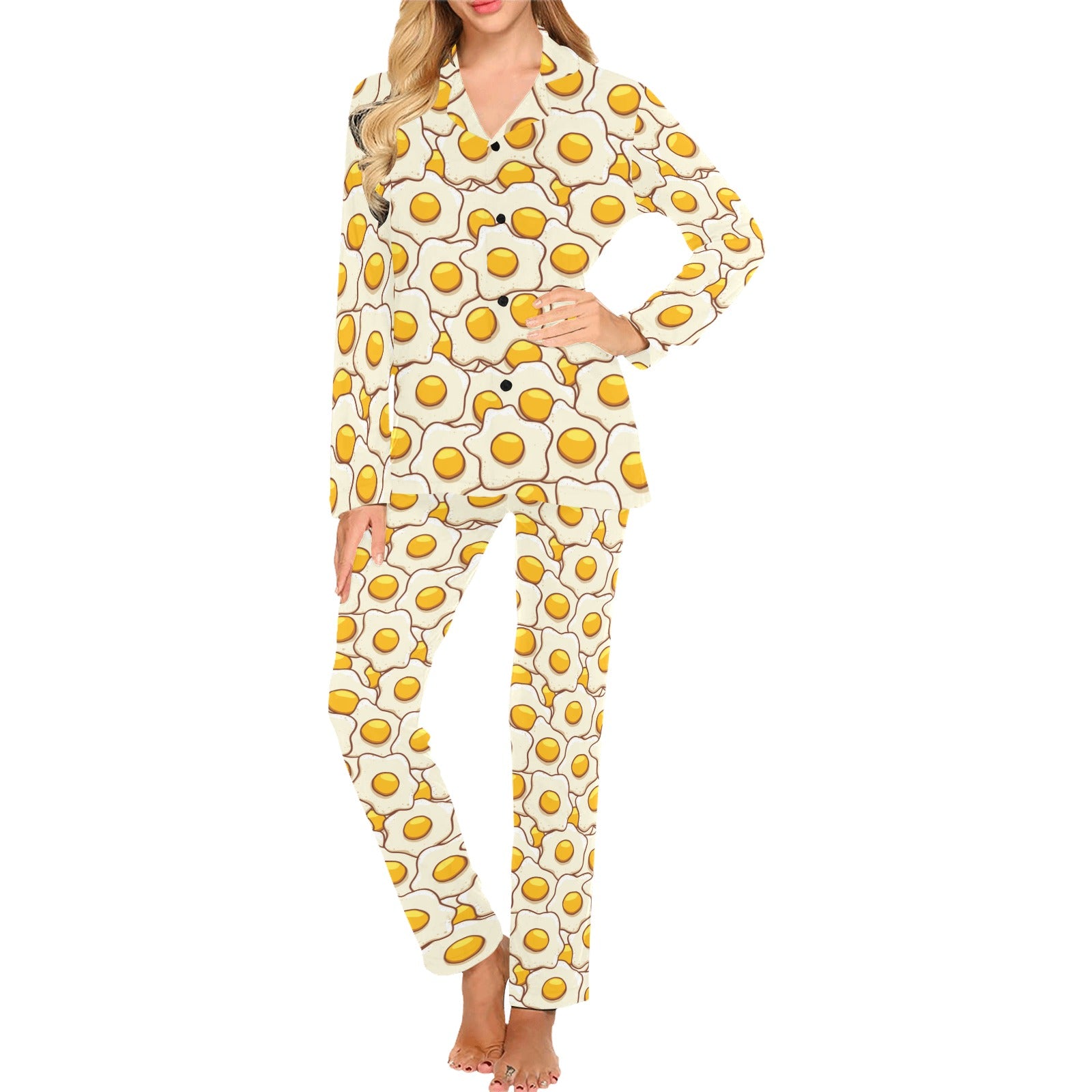 Fried Eggs Pattern Print Design 02 Women's Long Pajama Set