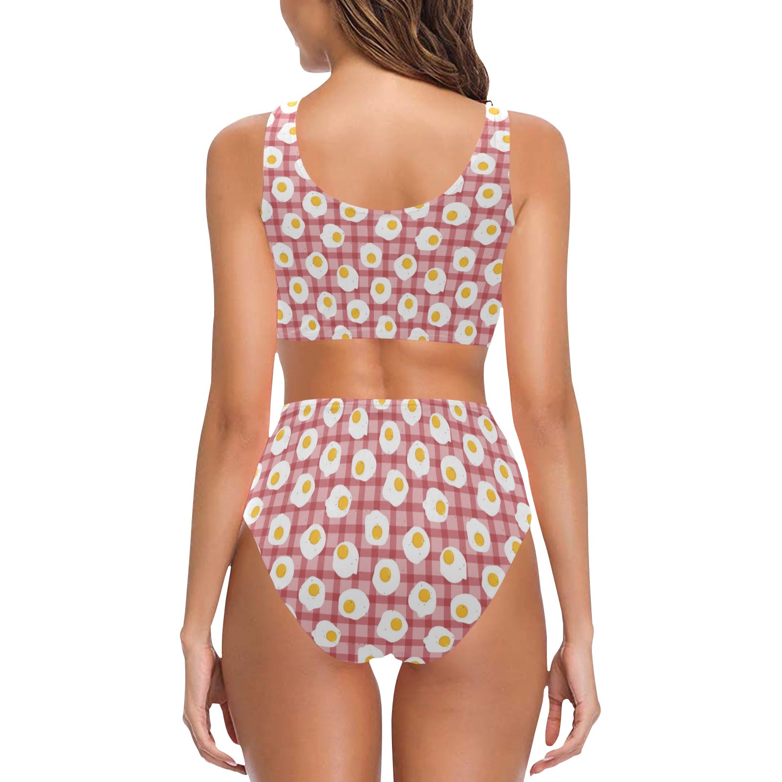 Fried Eggs Pattern Print Design 03 Chest Bowknot High Waisted Bikini Swimsuit
