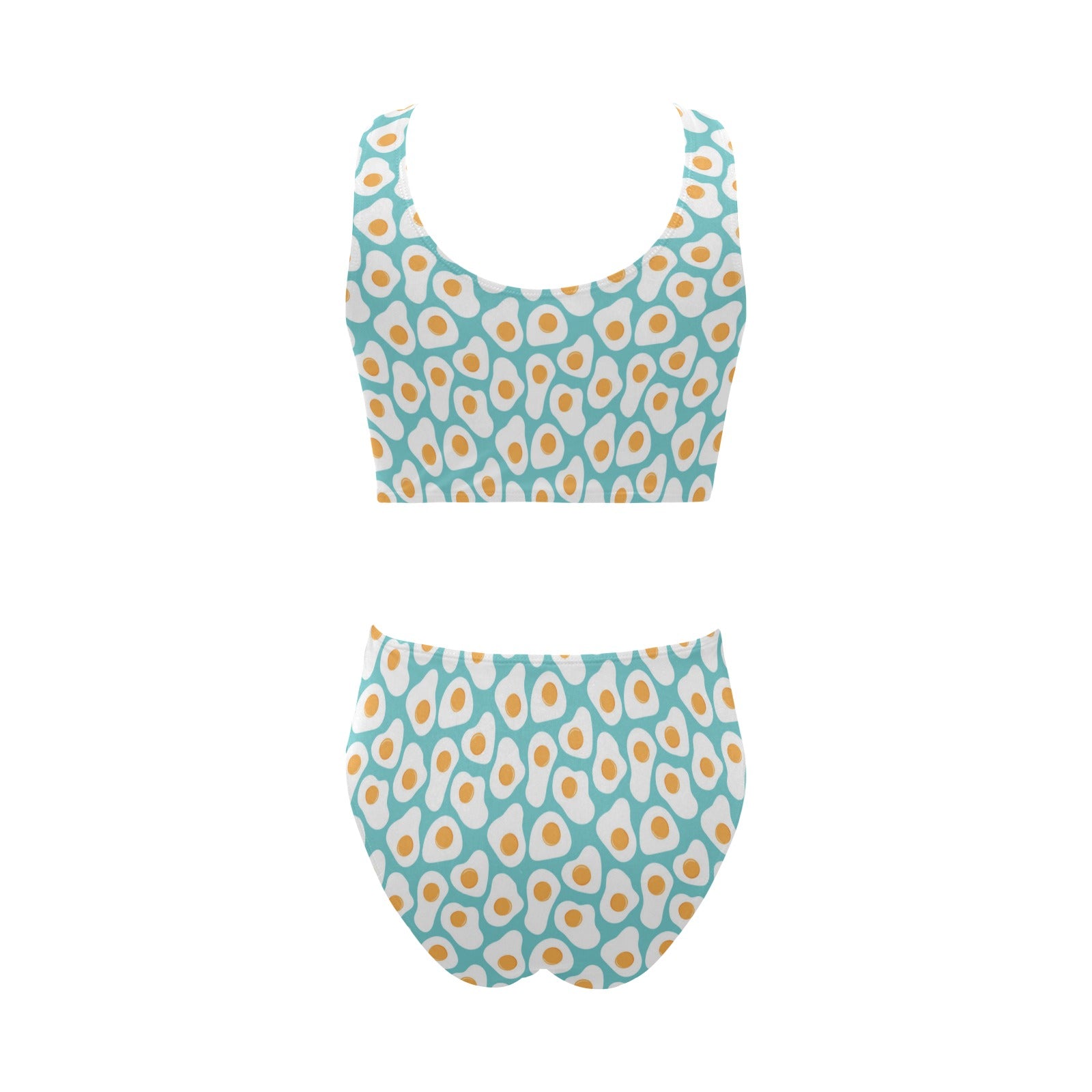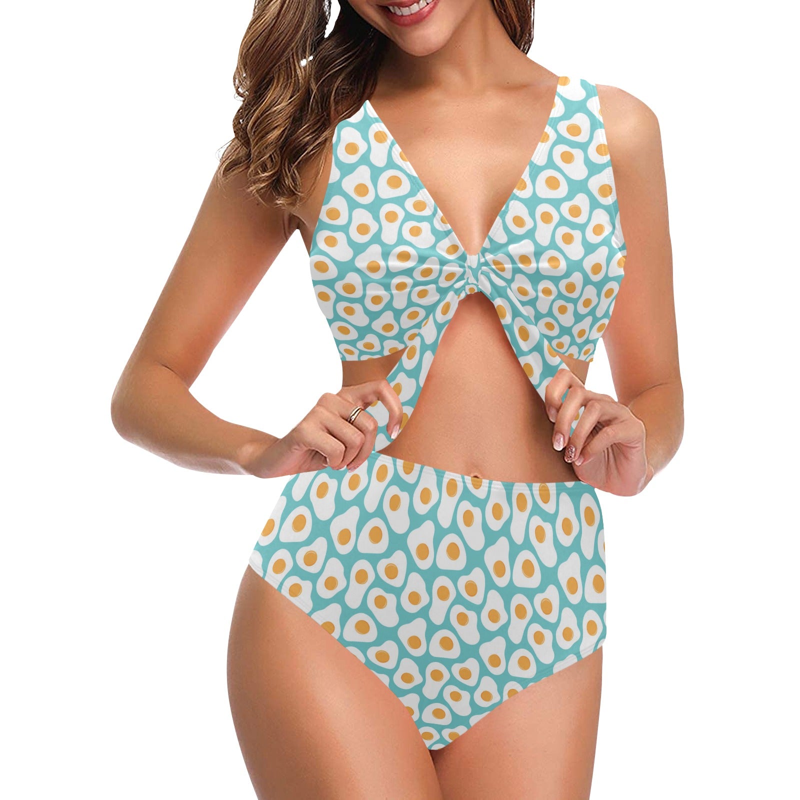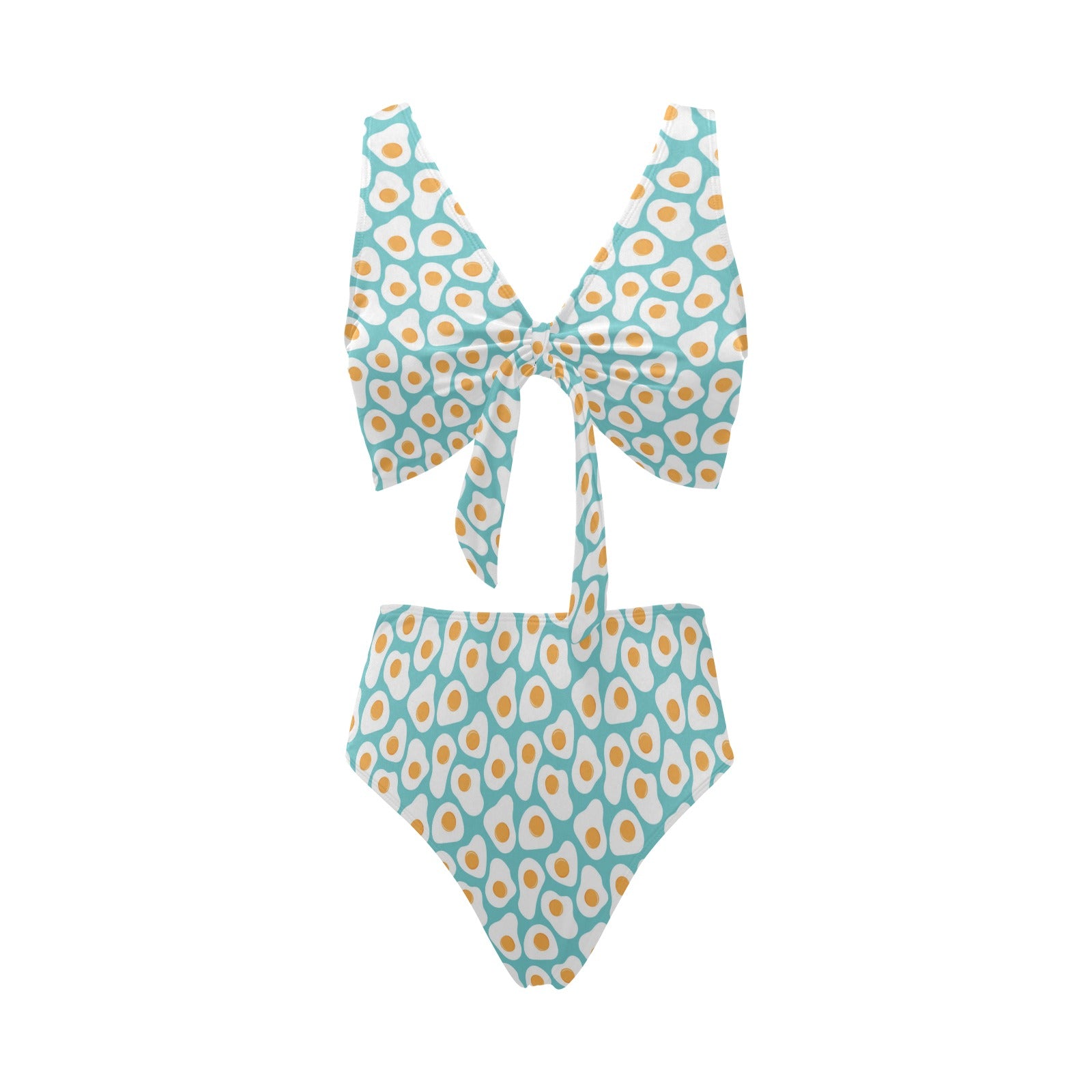 Fried Eggs Pattern Print Design 04 Chest Bowknot High Waisted Bikini Swimsuit