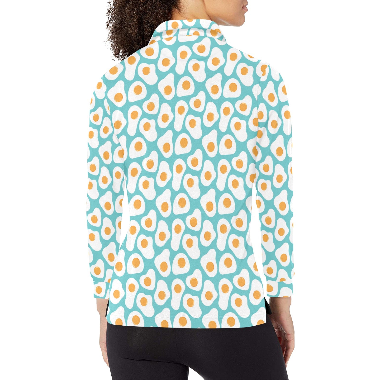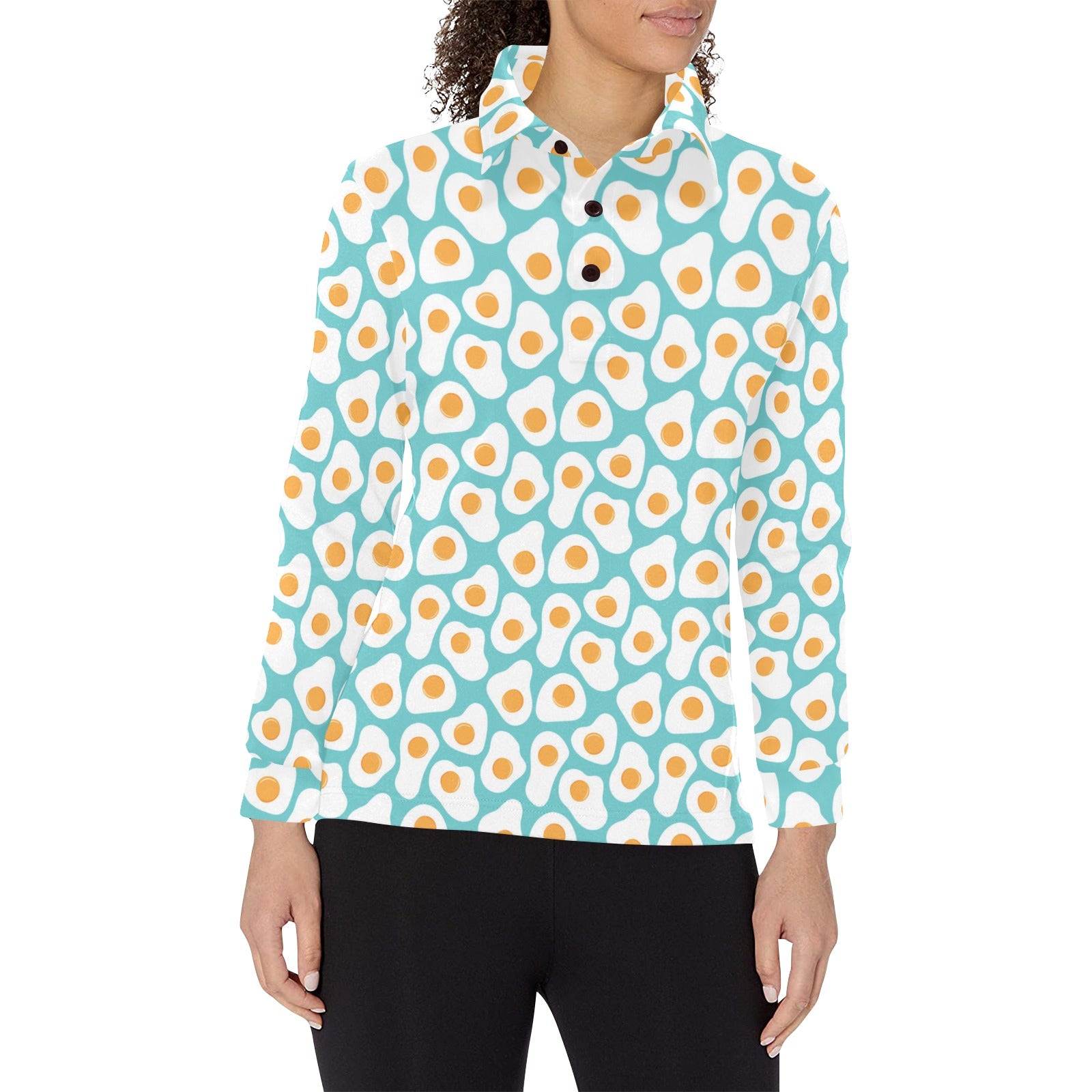 Fried Eggs Pattern Print Design 04 Women's Long Sleeve Polo Shirt
