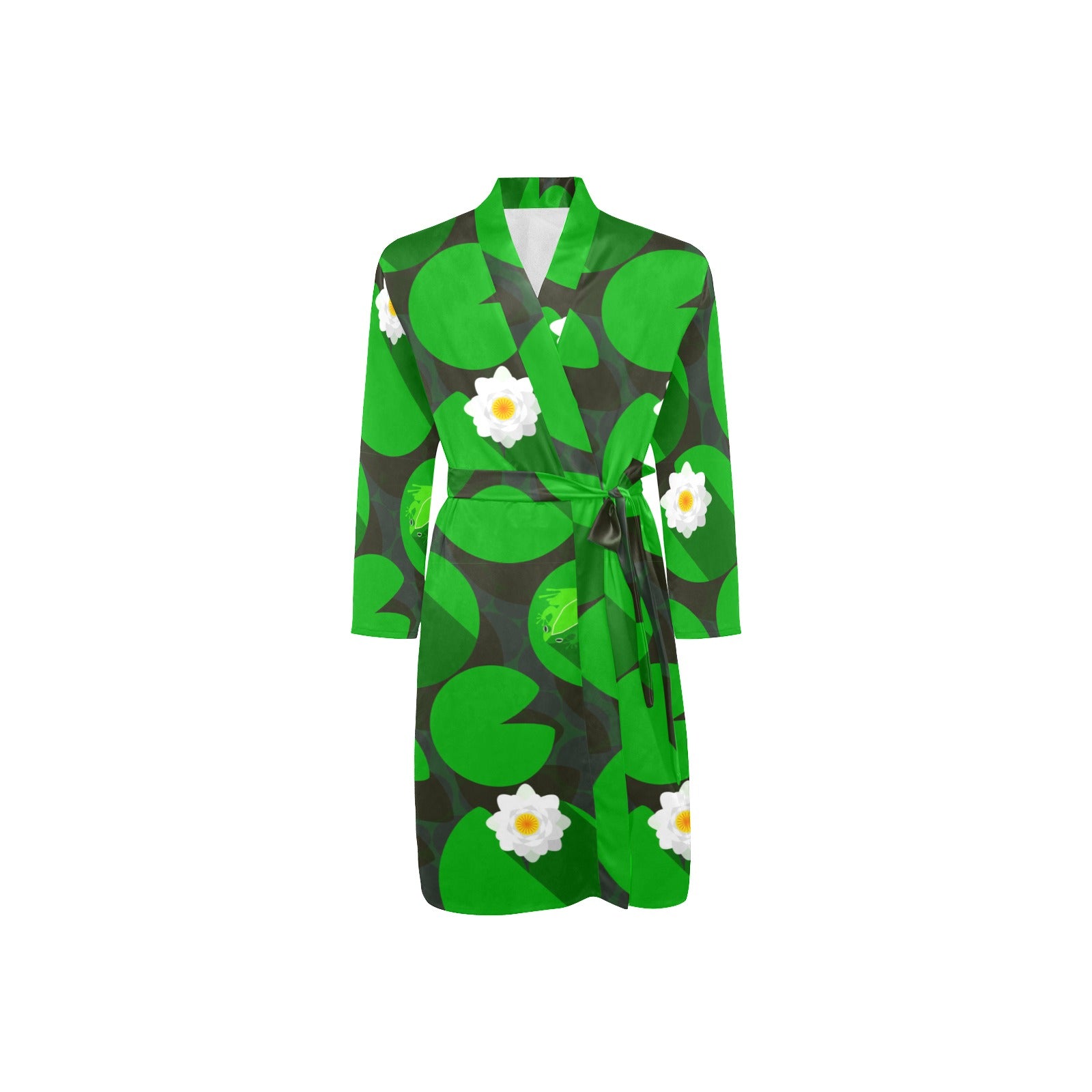Frog waterlily pattern Men's Long Sleeve Belted Night Robe