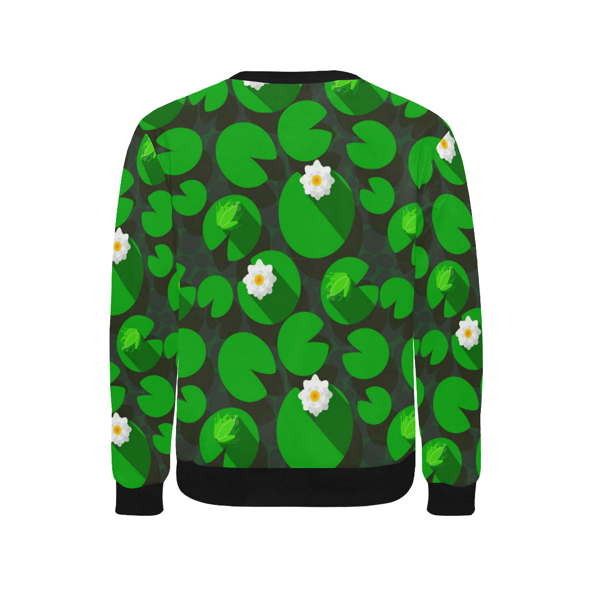 Frog waterlily pattern Men's Crew Neck Sweatshirt