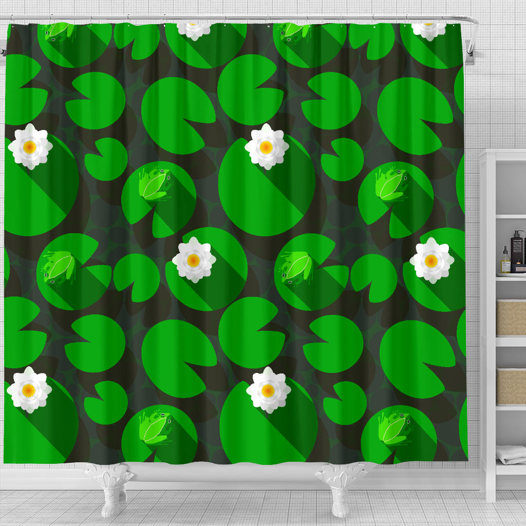 Frog Waterlily Pattern Shower Curtain Fulfilled In US