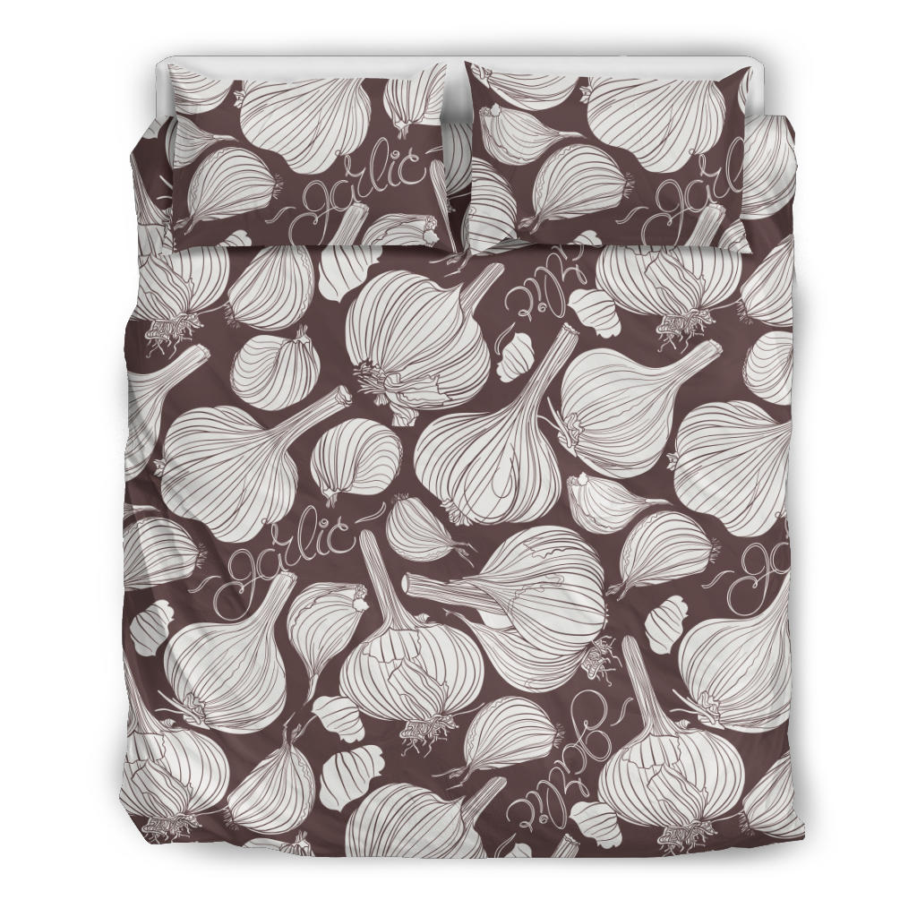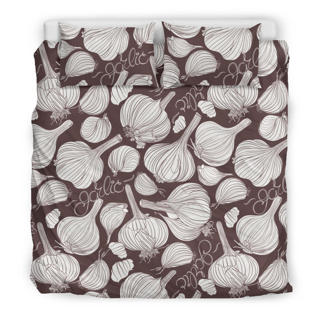 Garlic bulb dark background Bedding Set is a uniqued design and limited item. It made to order, hand printed, and sewn with love in our factory.