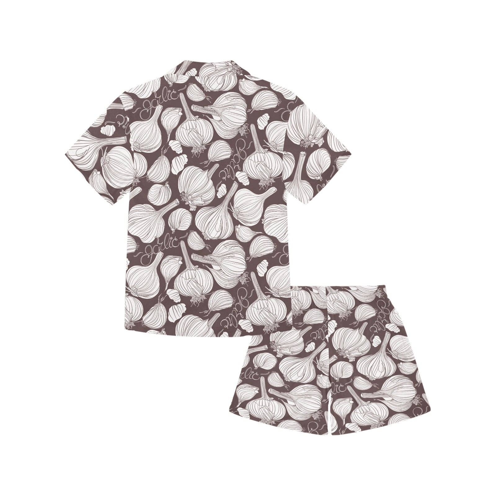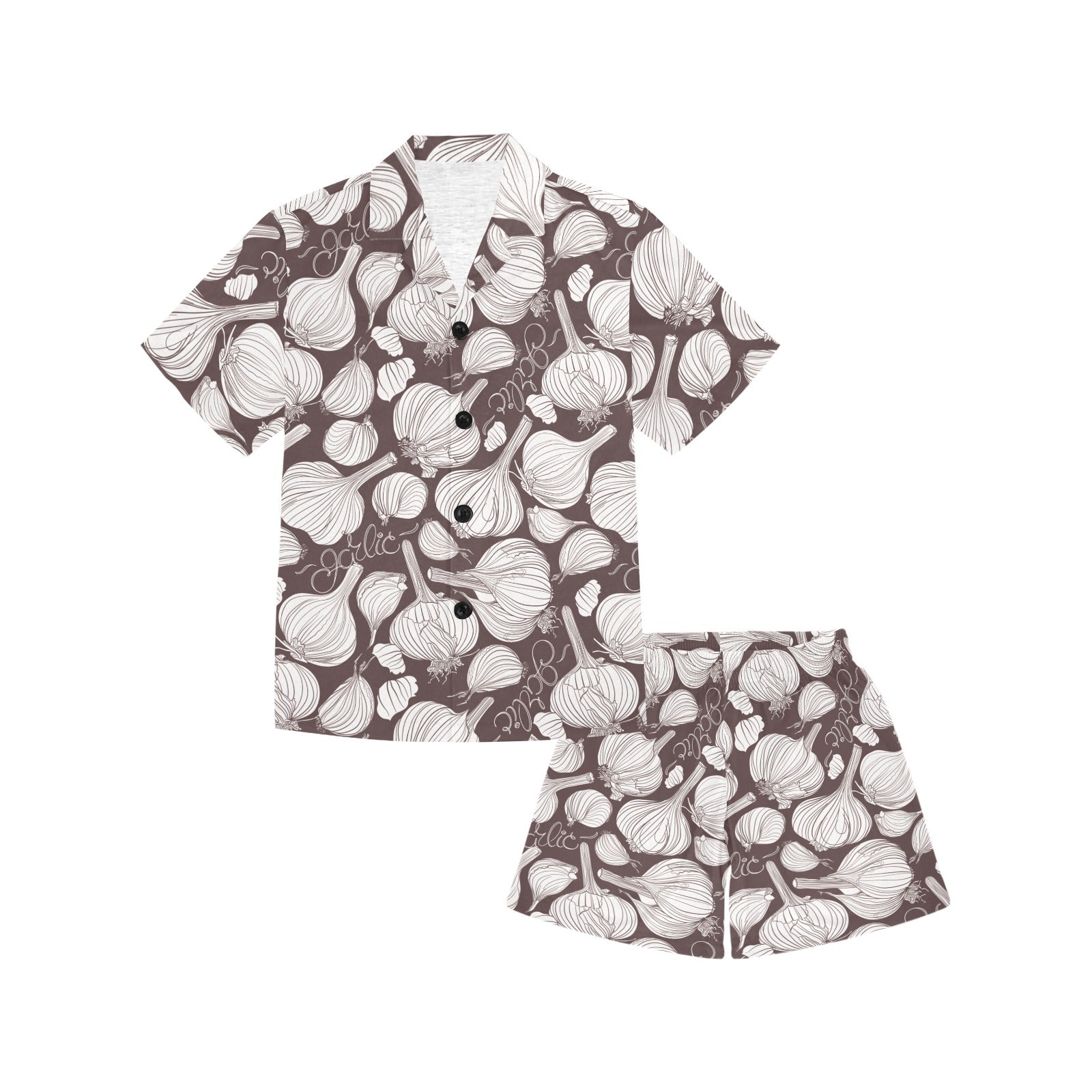 Garlic bulb dark background Kids' Boys' Girls' V-Neck Short Pajama Set