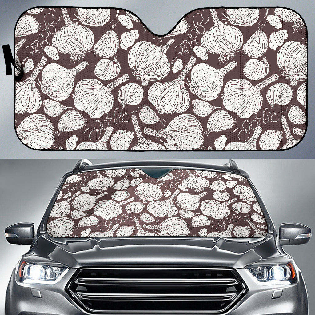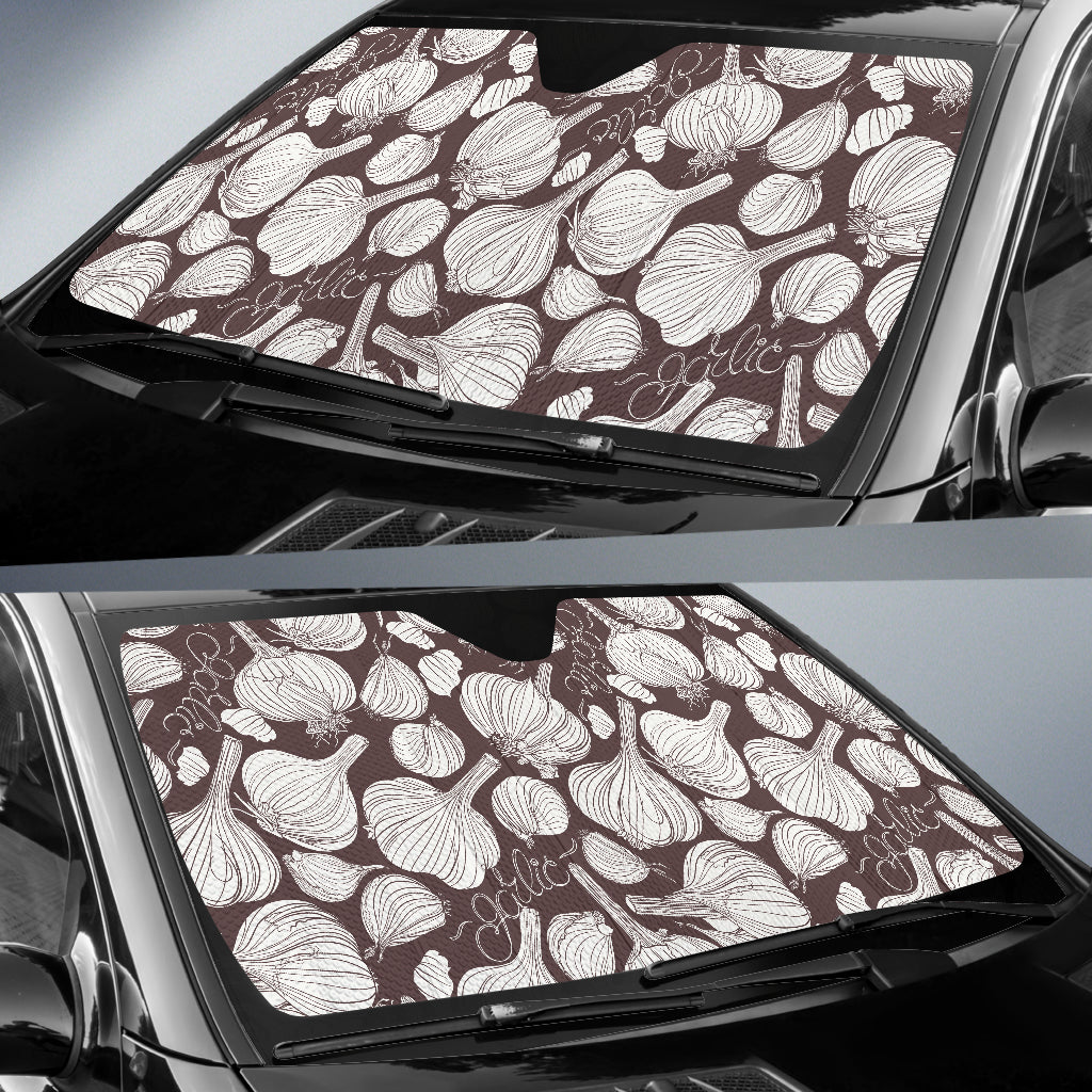 Garlic bulb dark background Car Sun Shade is a uniqued design and limited item. It made to order, hand printed, and sewn with love in our factory.
