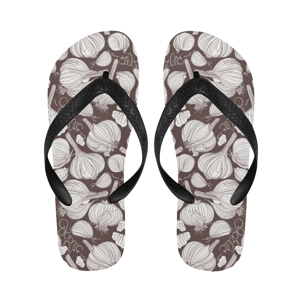 Garlic bulb dark background Unisex Flip Flops is a uniqued design and limited item. It made to order, hand printed, and sewn with love in our factory.
