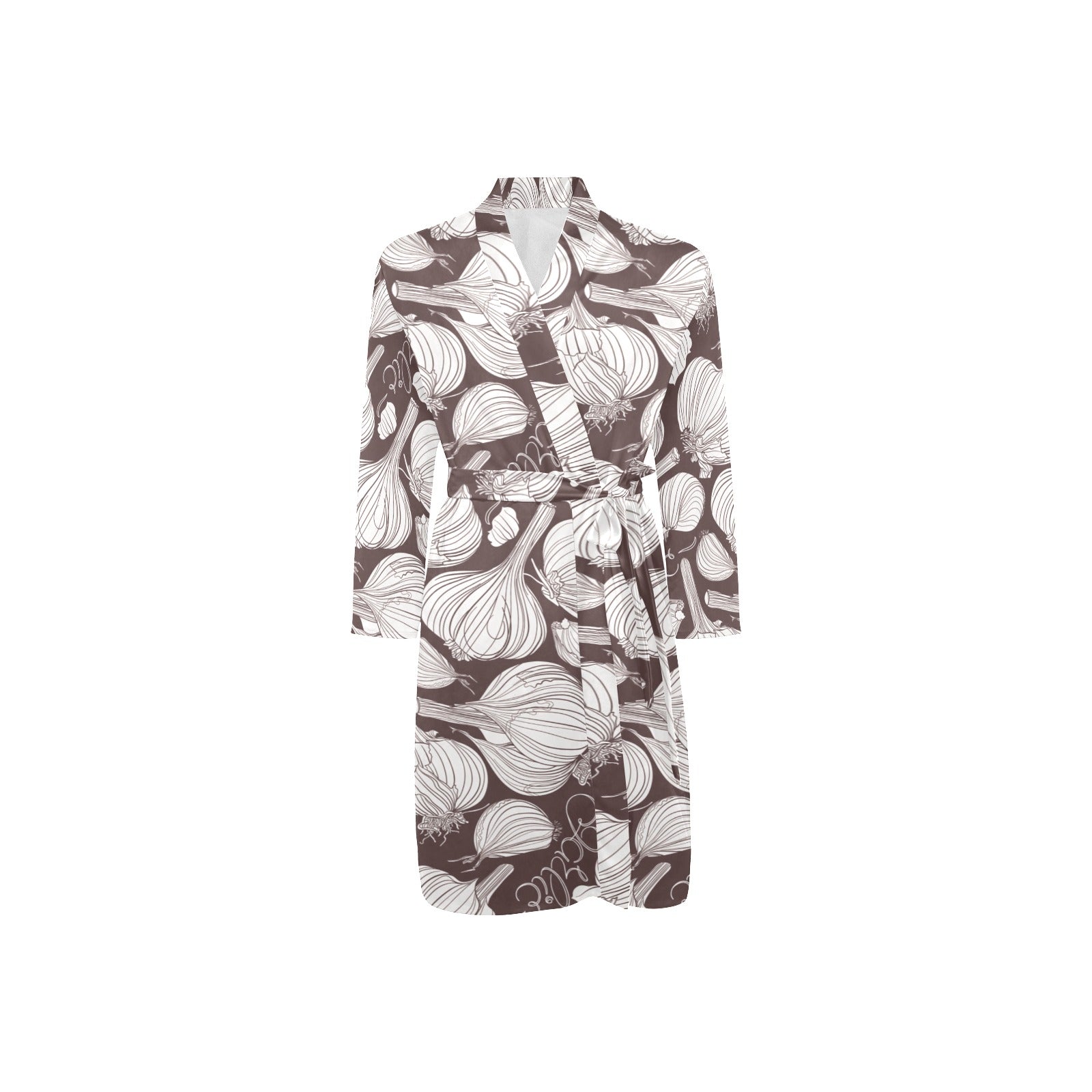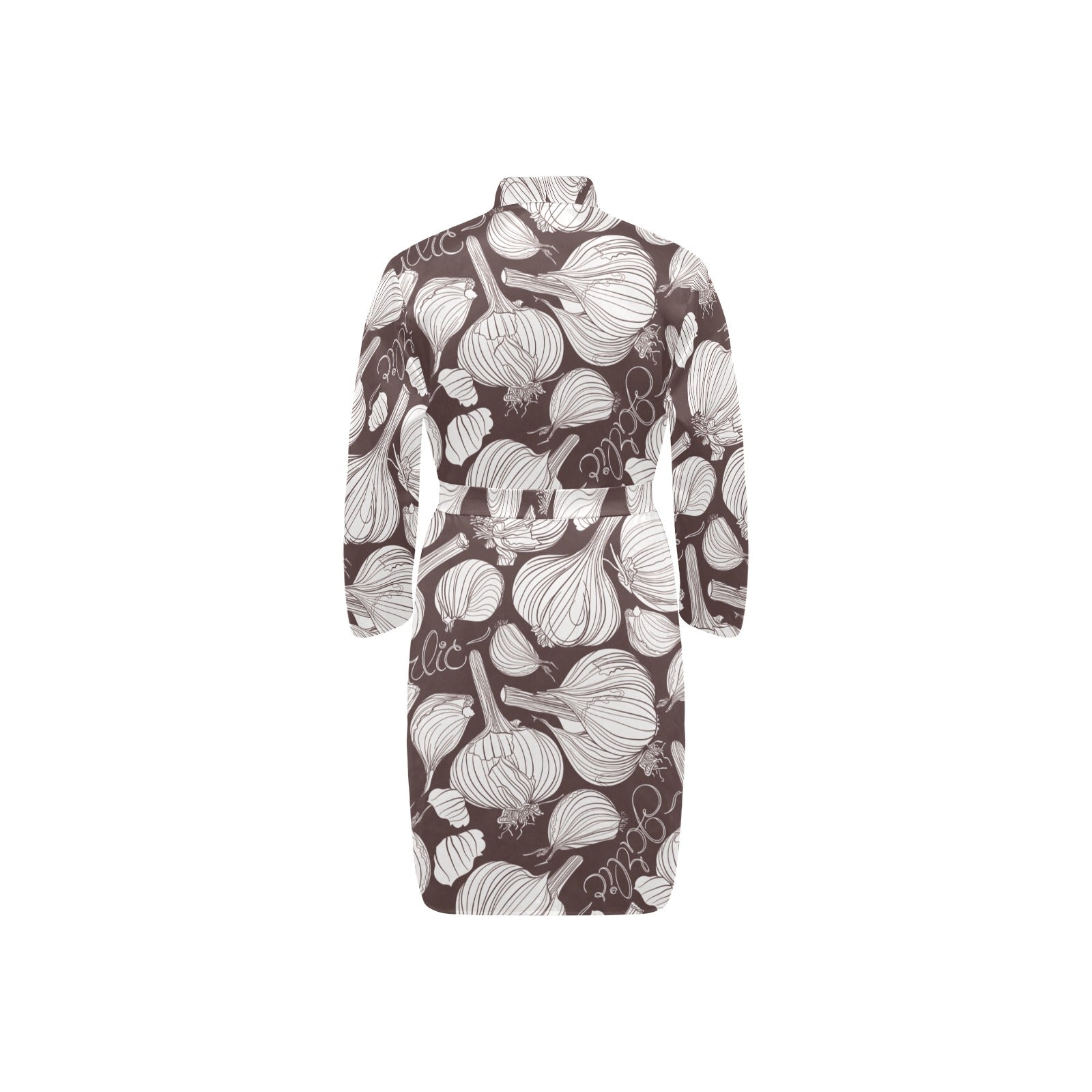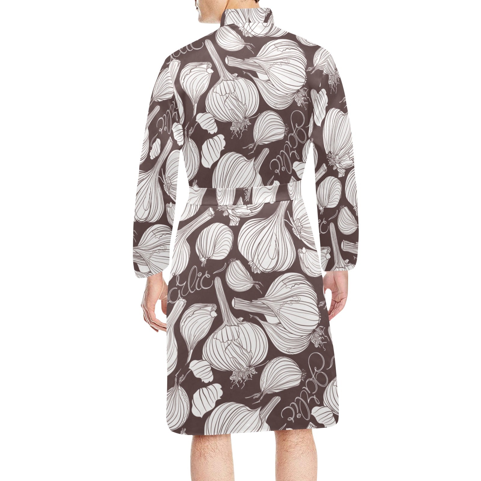 Garlic bulb dark background Men's Long Sleeve Belted Night Robe