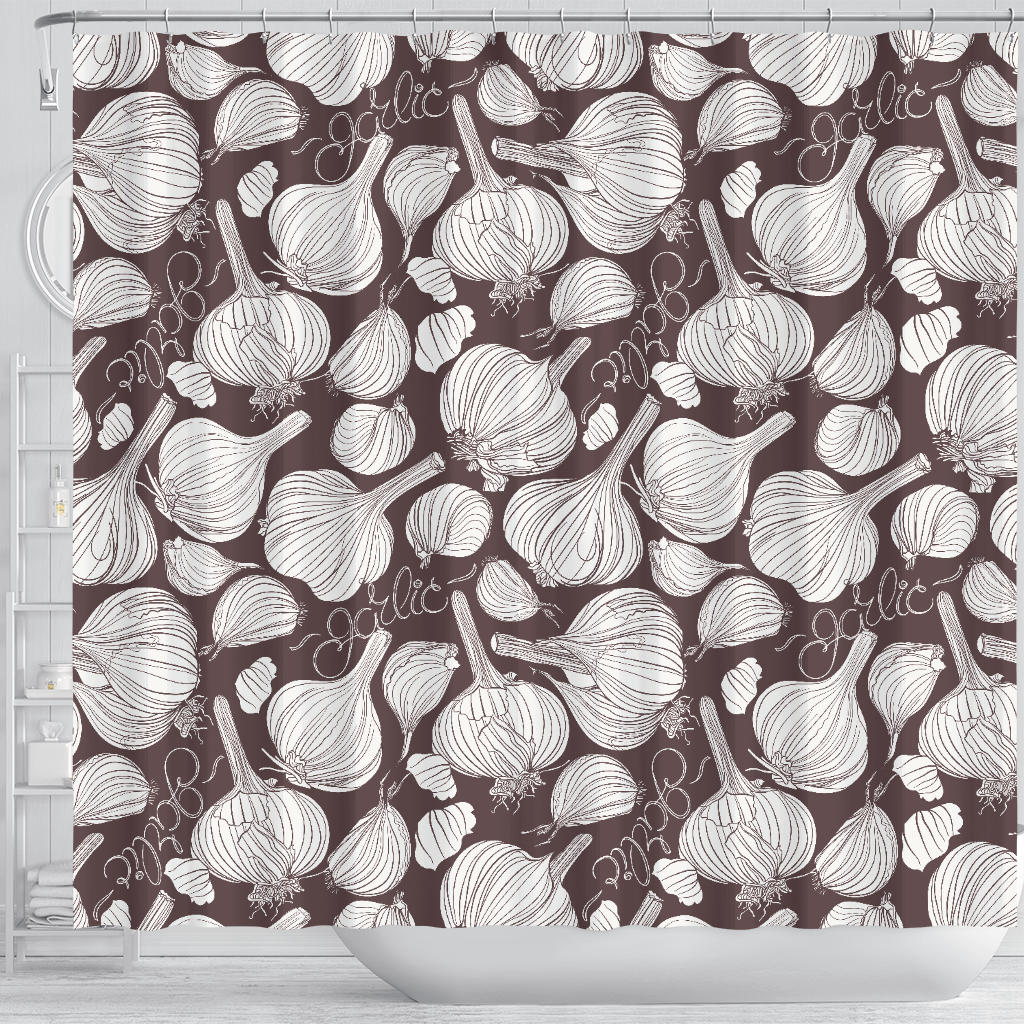 Garlic bulb dark background Shower Curtain is a uniqued design and limited item. It made to order, hand printed, and sewn with love in our factory.