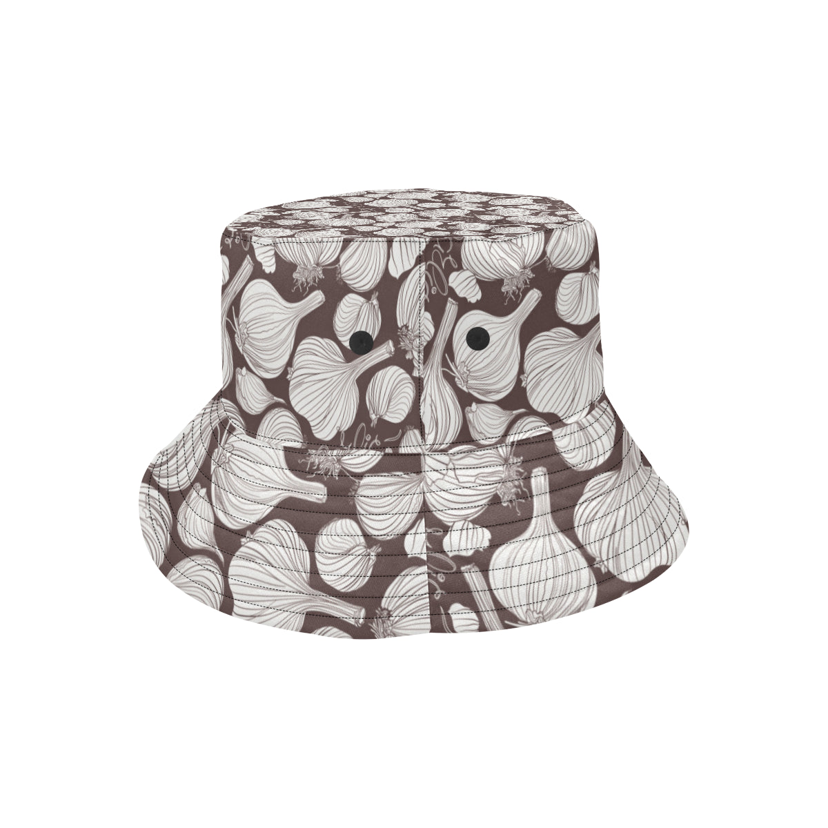 Garlic bulb dark background Unisex Bucket Hat is a uniqued design and limited item. It made to order, hand printed, and sewn with love in our factory.