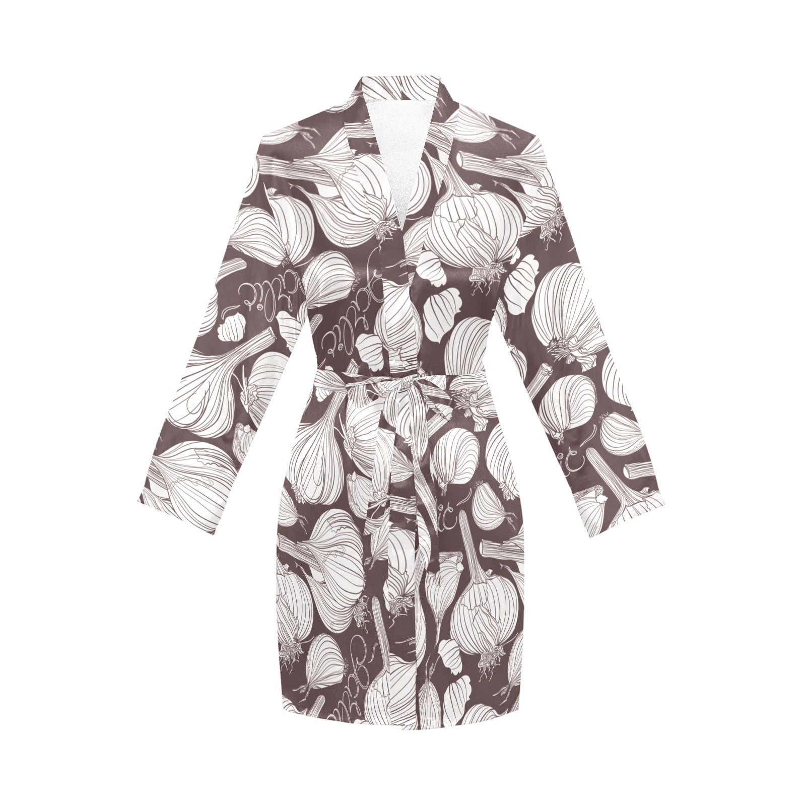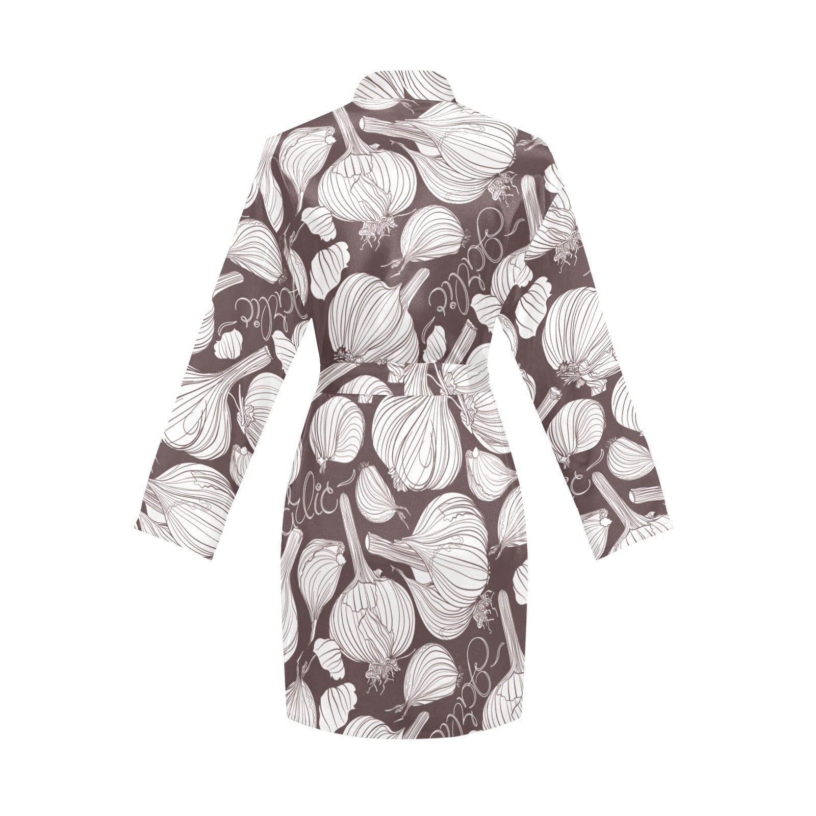 Garlic bulb dark background Women's Long Sleeve Belted Night Robe