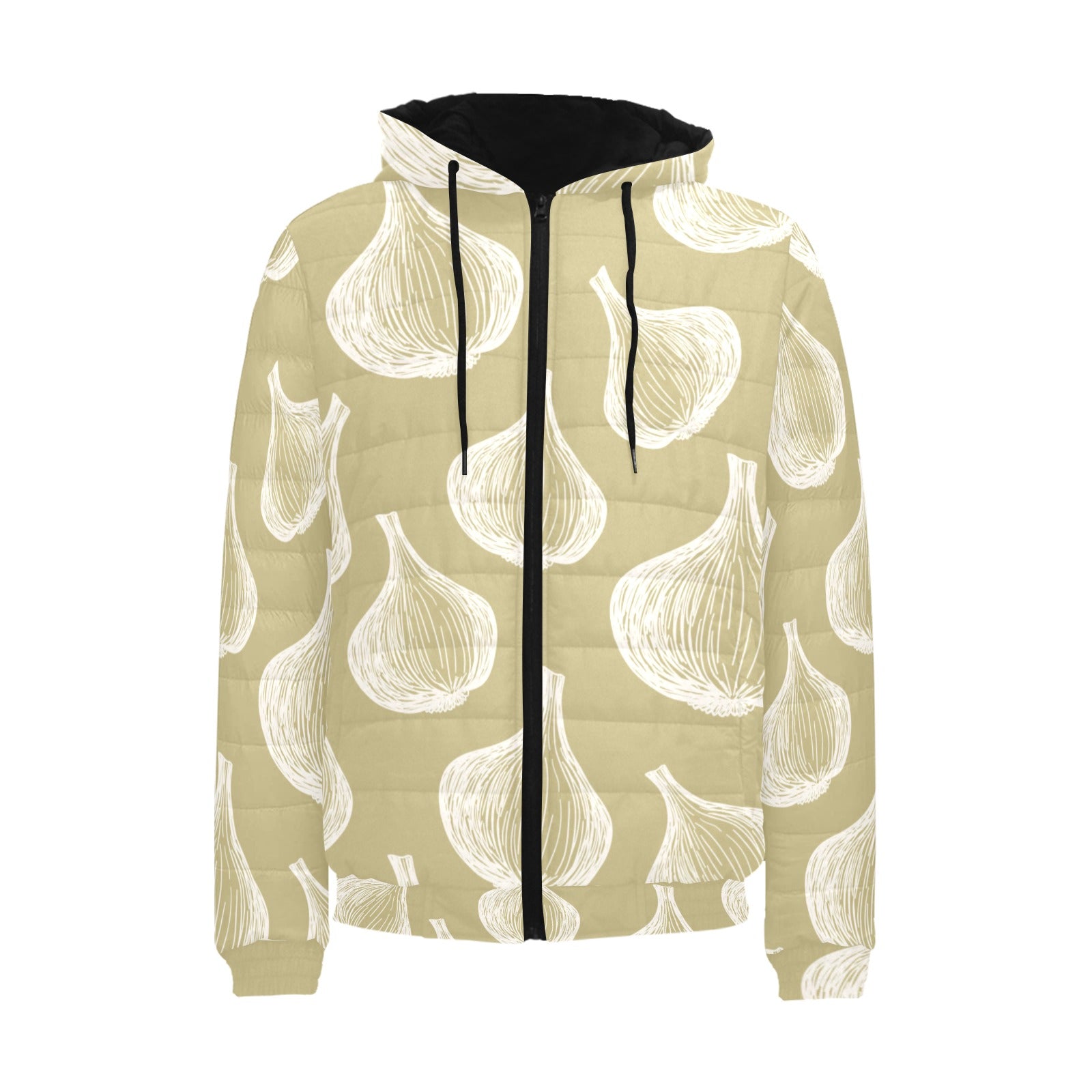 Garlic design pattern Men's Padded Hooded Jacket