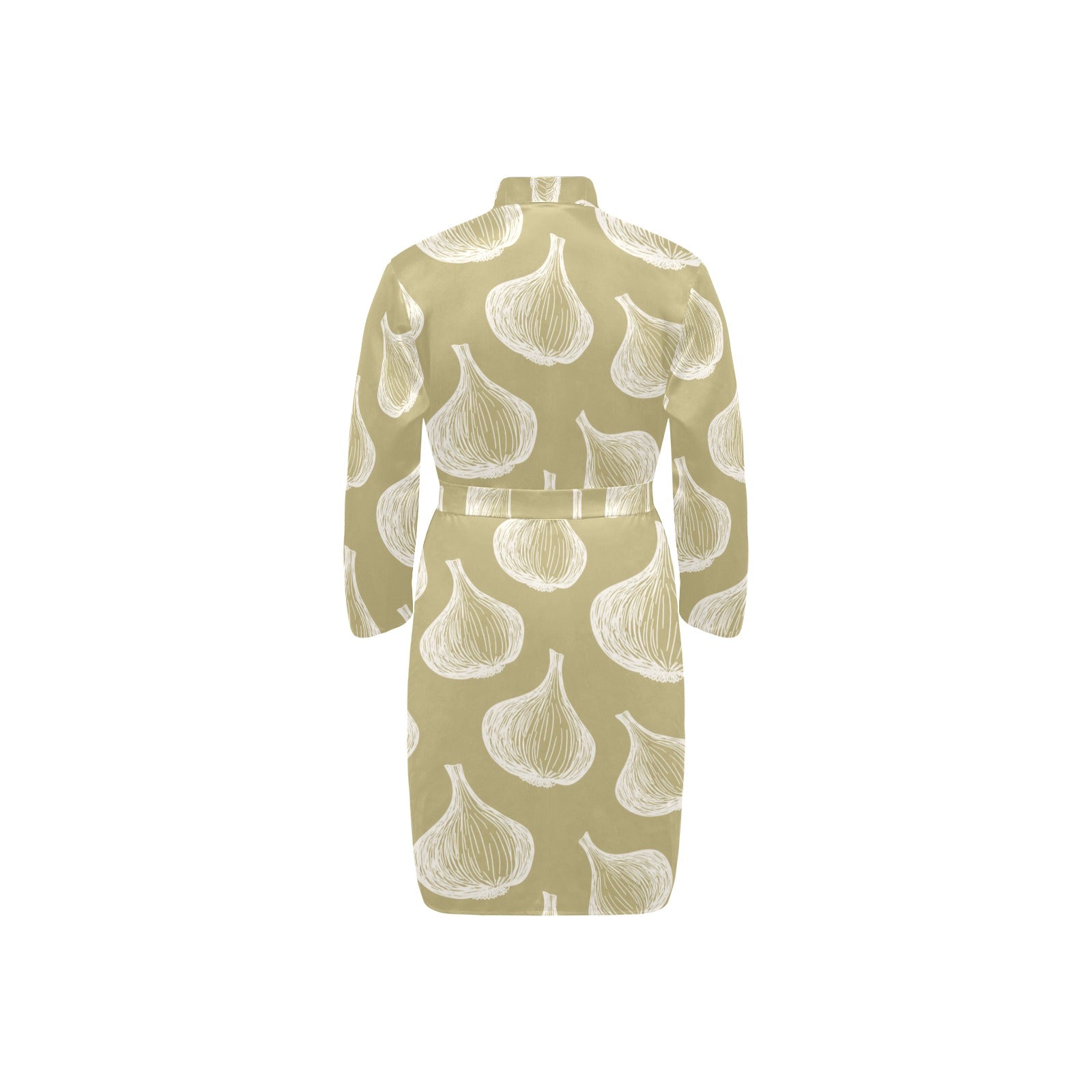 Garlic design pattern Men's Long Sleeve Belted Night Robe