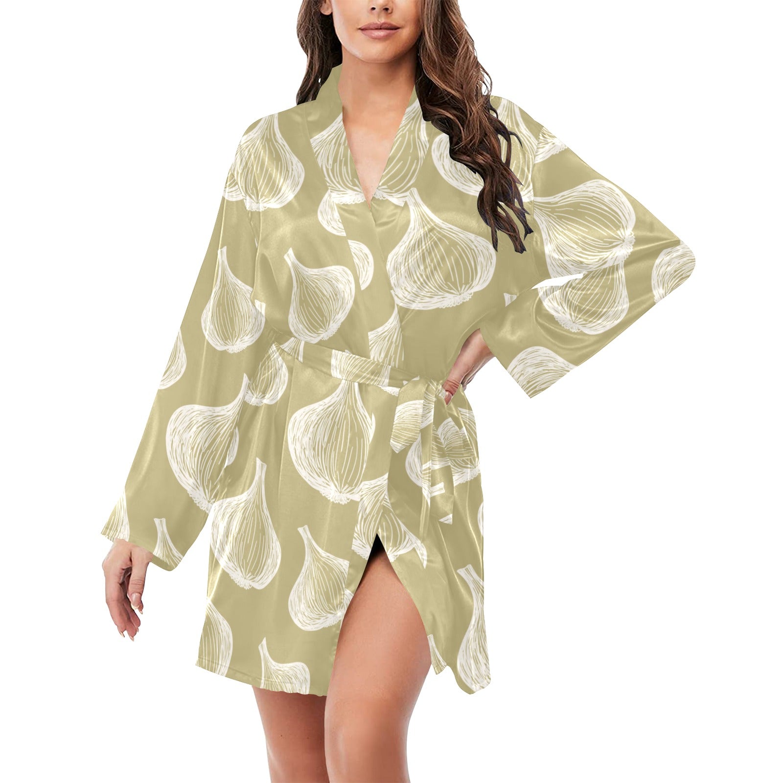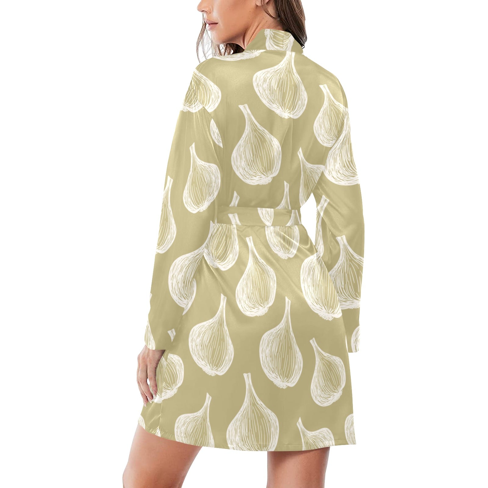 Garlic design pattern Women's Long Sleeve Belted Night Robe