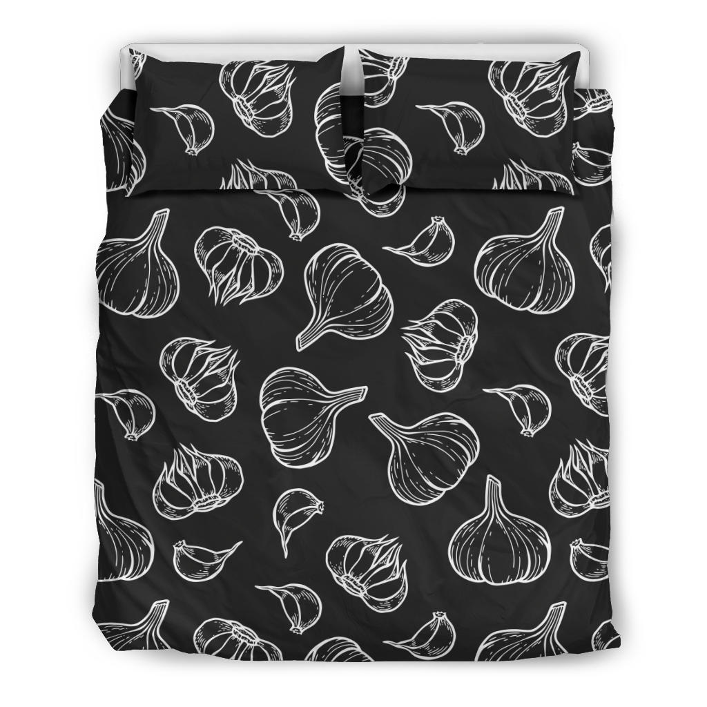 Garlic pattern black background Bedding Set is a uniqued design and limited item. It made to order, hand printed, and sewn with love in our factory.