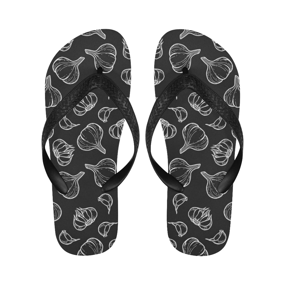 Garlic pattern black background Unisex Flip Flops