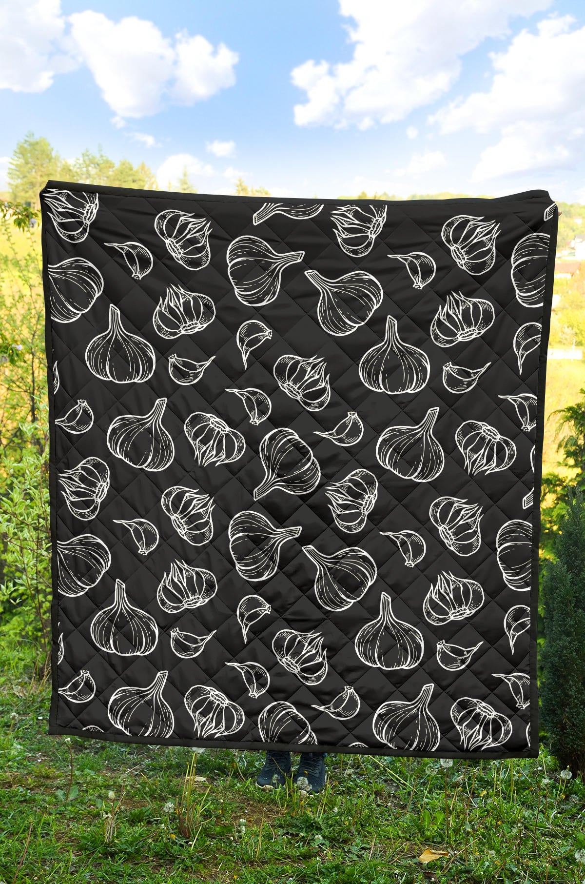 Garlic Pattern Black Background Premium Quilt is a uniqued design and limited item. It made to order, hand printed, and sewn with love in our factory.