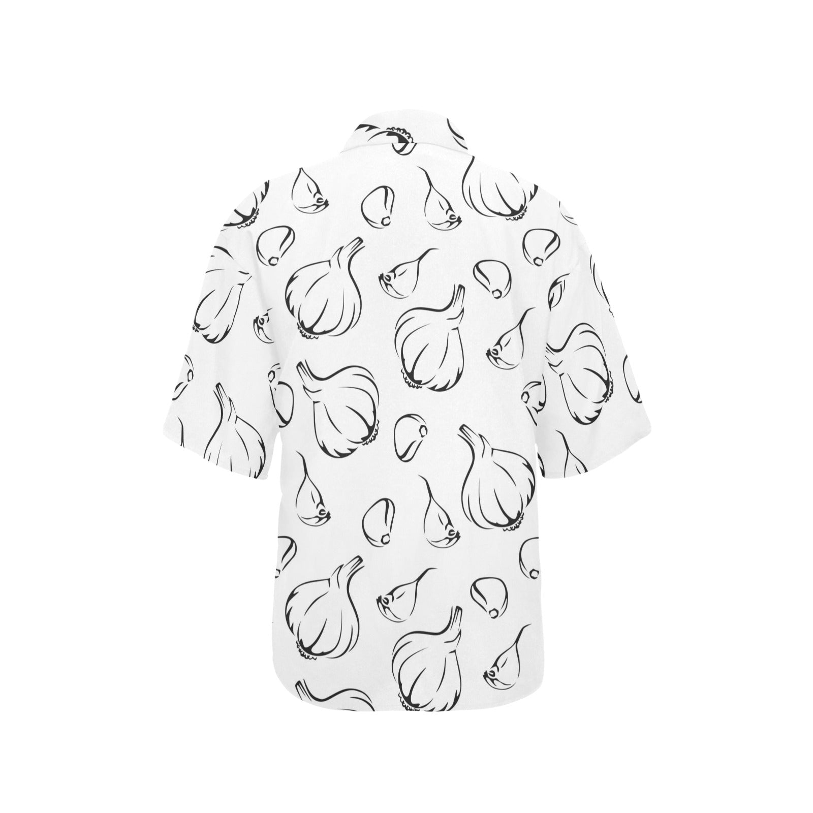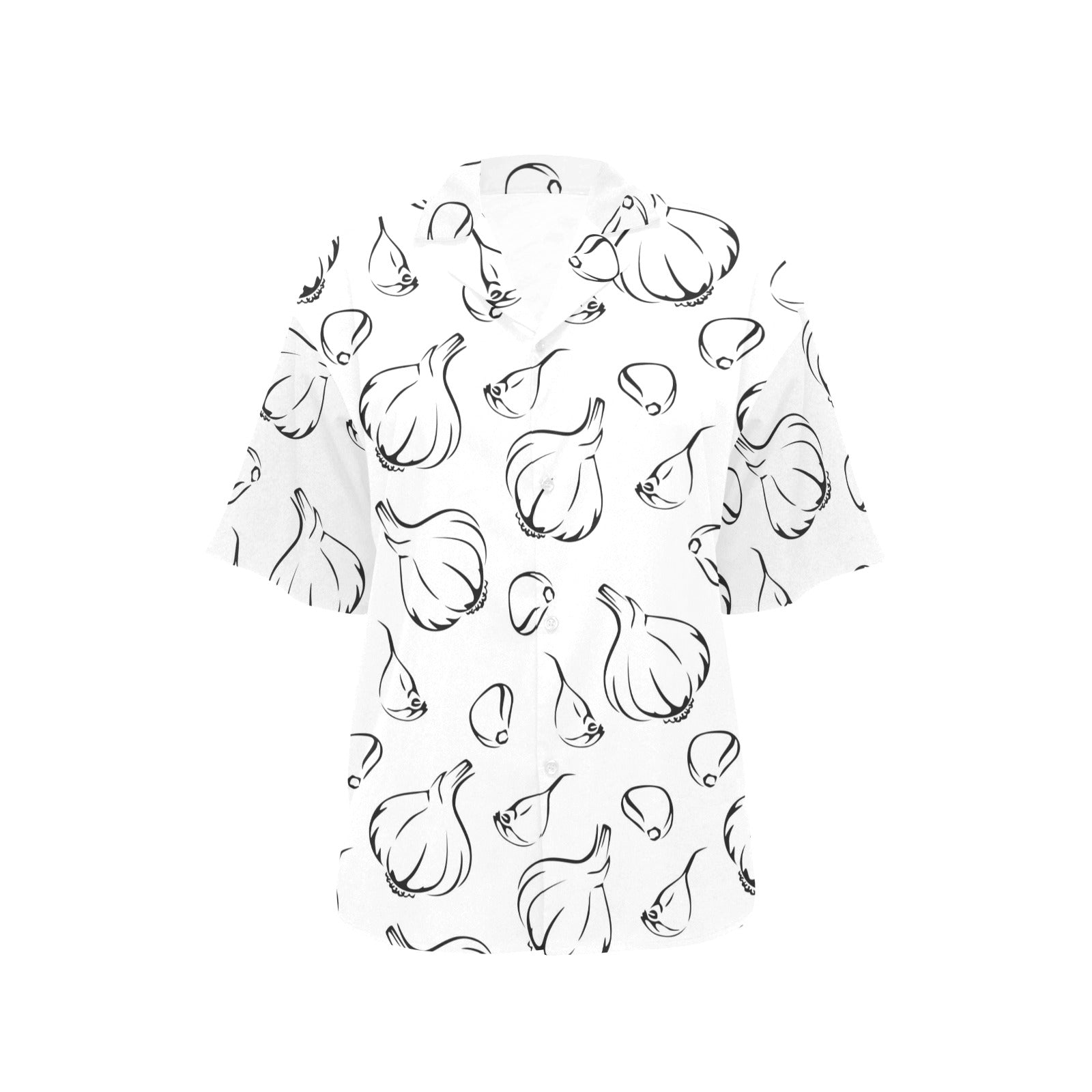 Garlic pattern black white Women's All Over Print Hawaiian Shirt