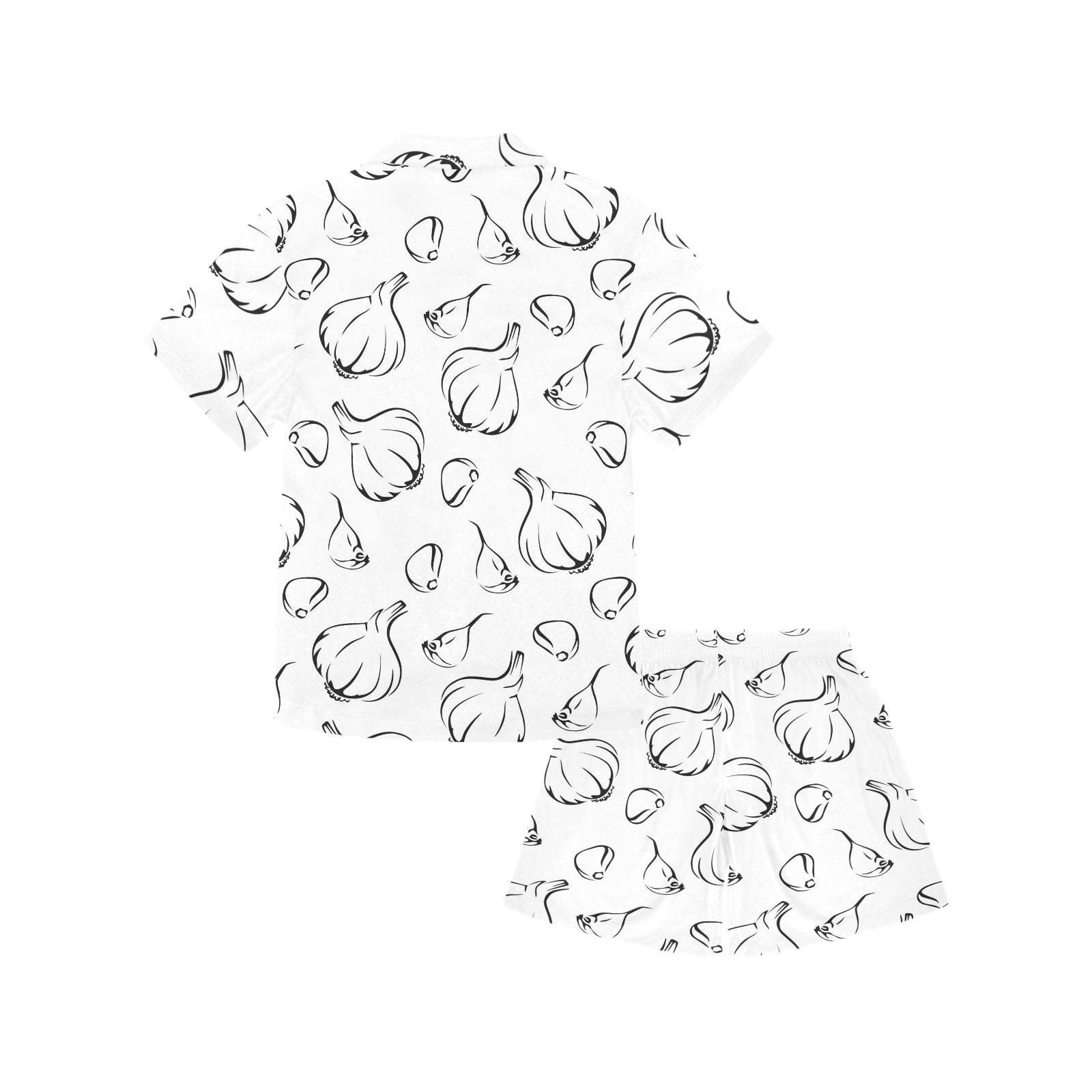 Garlic pattern black white Kids' Boys' Girls' V-Neck Short Pajama Set