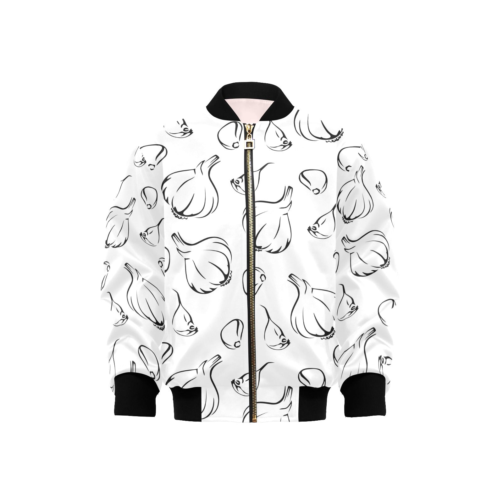 Garlic pattern black white Kids' Boys' Girls' Bomber Jacket