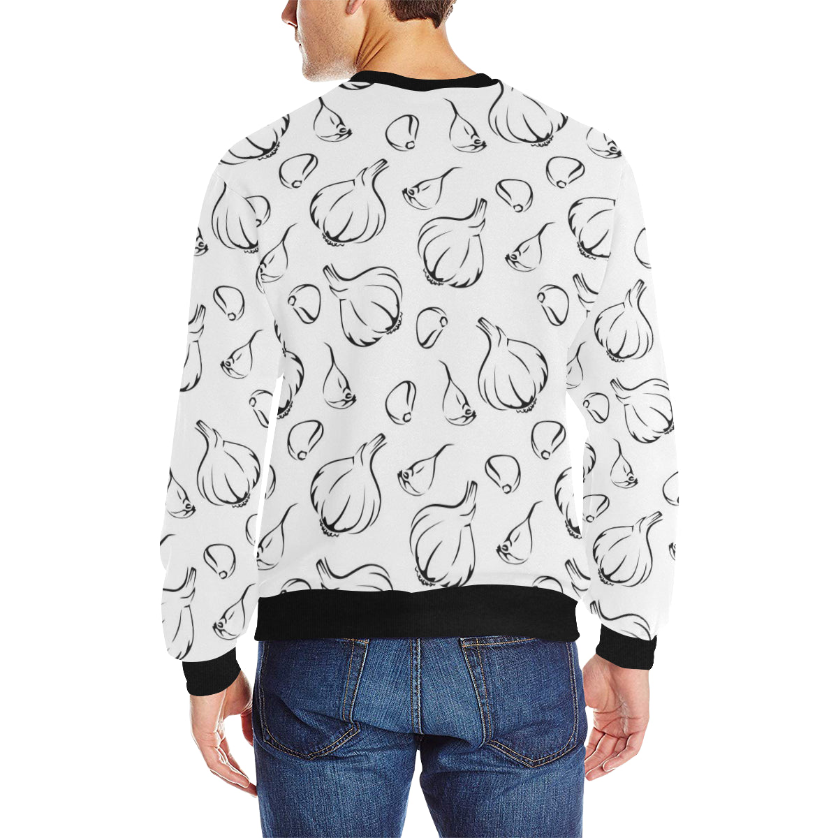 Garlic pattern black white Men's Crew Neck Sweatshirt