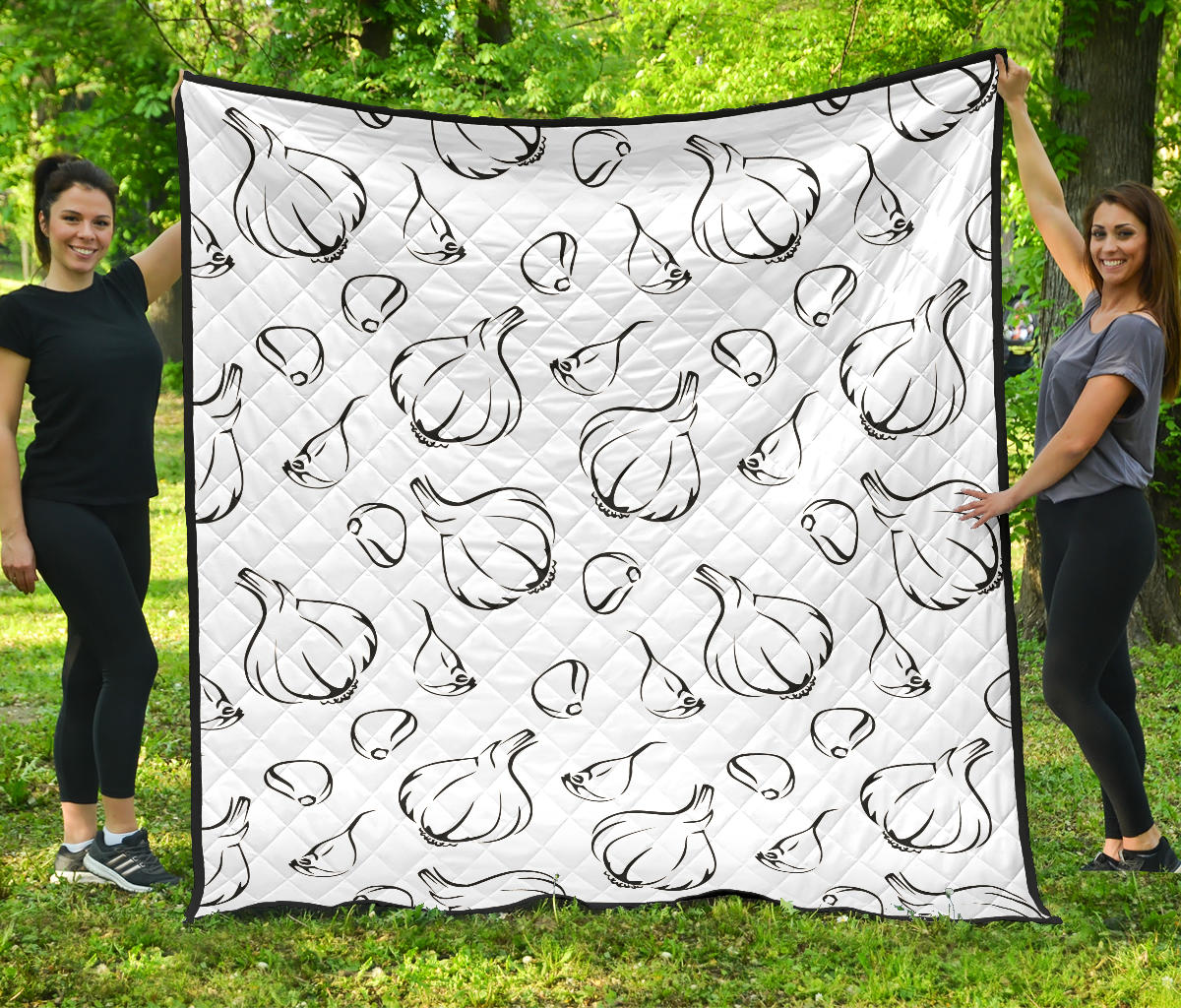 Garlic Pattern Black White Premium Quilt is a uniqued design and limited item. It made to order, hand printed, and sewn with love in our factory.